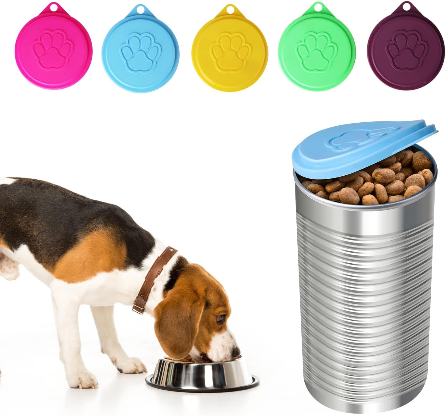 JIAKAI 5 PCS Pet Dog Cat Food Can Cover Pet self-Sealing,Reusable pet Food lids, Environmentally Friendly(Color Random)