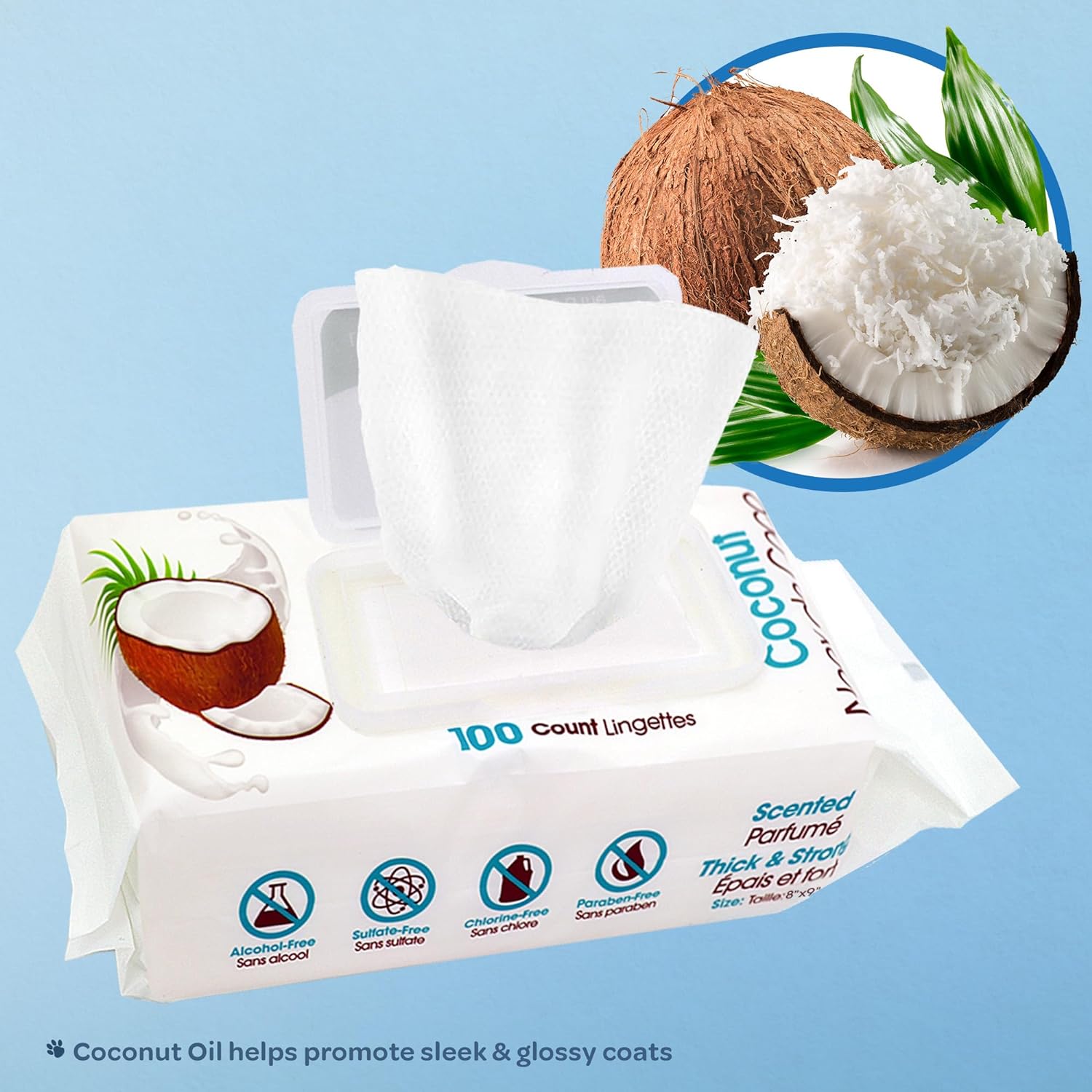 - HYDRATING FORMULA: Coconut, Vitamin E, and cucumber extract in dog cleaning wipes nourish and hydrate