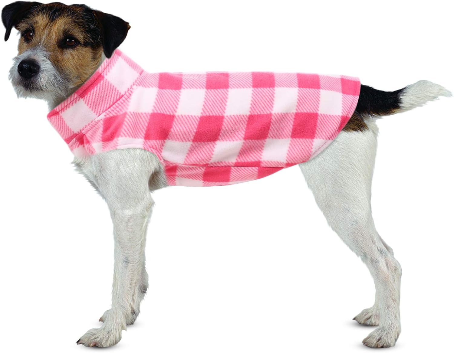 ASENKU Dog Sweater, Plaid Dogs Fleece Vest, Soft Comfortable Pet Pajamas, Warm Winter Puppy Shirt, Cold Weather Coat Jacket Pet Clothes for Small & Medium Dog Breeds, Pink, L