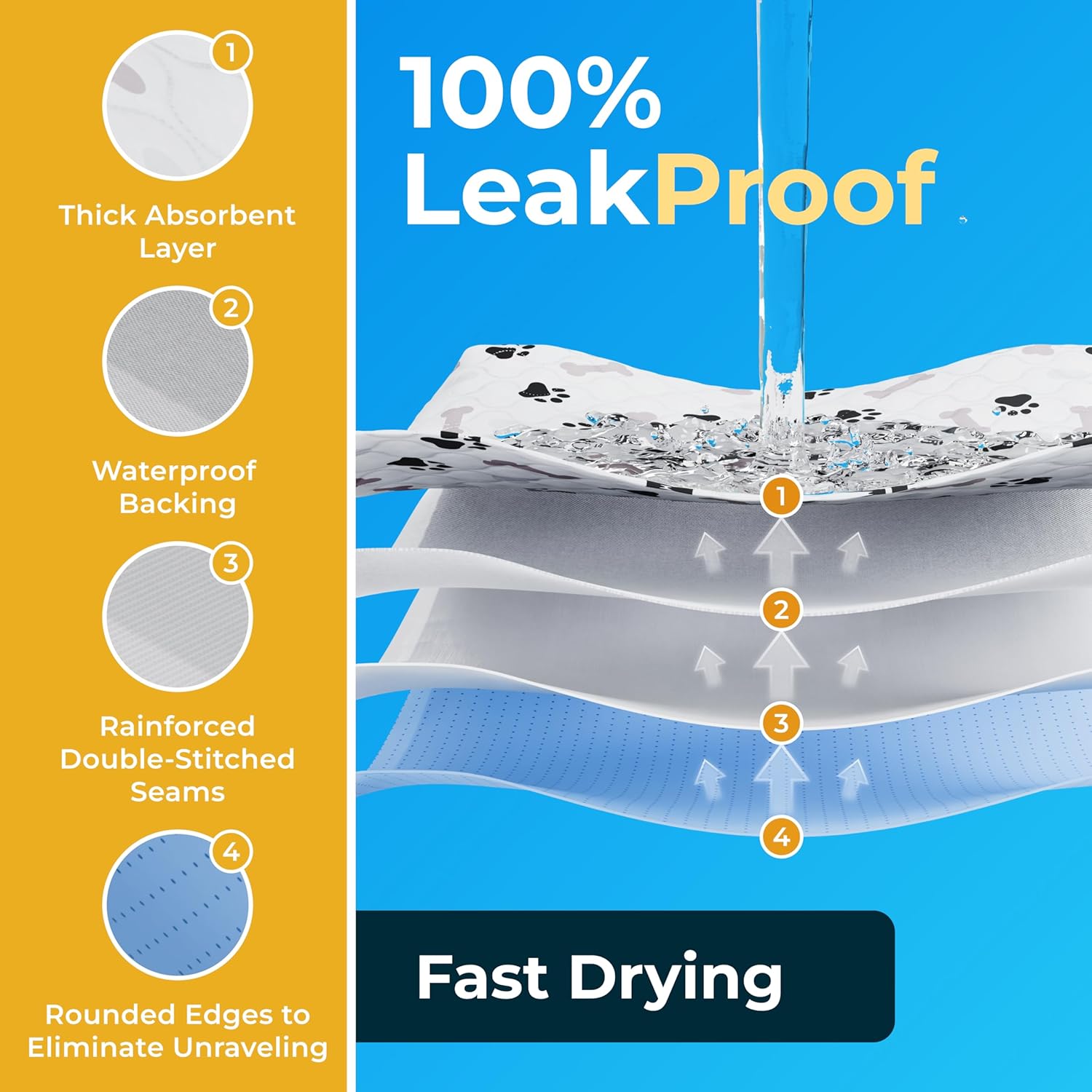 GREEN LIFESTYLE Washable Pee Pads for Dogs - Waterproof Reusable Puppy Pads with Anti-Slip Backing, Pet Training Pad for Puppy Playpen, Crate, Whelping Box, Potty Training (4, 34x36)