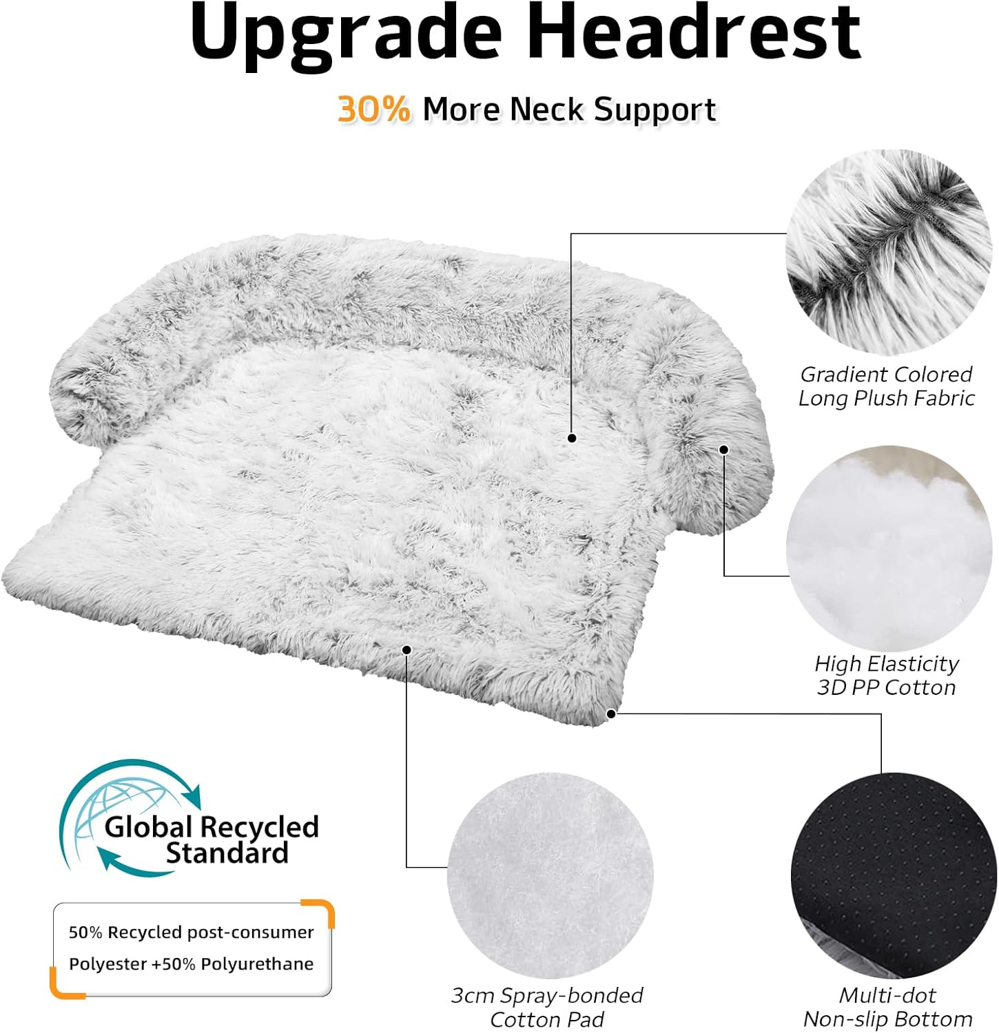 Calming Dog Bed Fluffy Plush Dog Mat for Furniture Protector with Removable Washable Cover for Large Medium Small Dogs and Cats (Small(35x31x5), Light Grey)