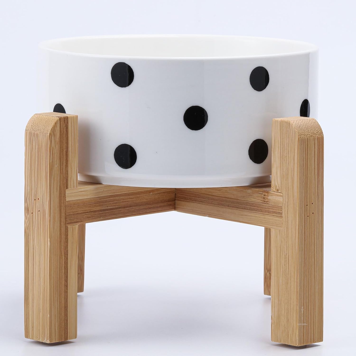 Petygooing Elevated/Raised Ceramic Dog Bowl for Small Breeds, Dog Food Water Dish with Stand,Pet Feeding Bowl with Anti Slip Rubber for Cats and Small Dogs Puppy 13.5 OZ (5.1In / 1.7 Cups) Black Dot