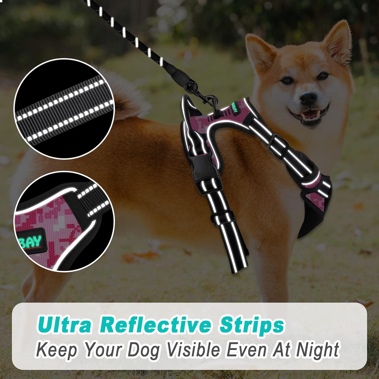 BARKBAY No Pull Dog Harness Large Step in Reflective Dog Harness with Front Clip and Easy Control Handle for Walking Training Running(Pink camo,L)