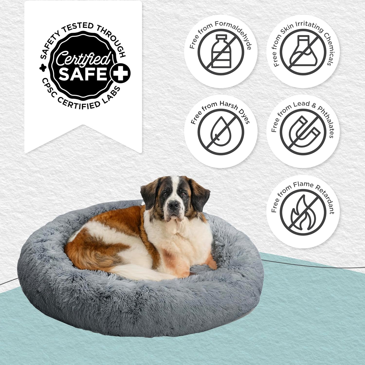 Best Friends by Sheri Original Calming Donut Dog and Cat Bed, Shag Faux Fur, Gray, XL (45in x 45in) - Anxiety Relief for Pets Up to 150 lbs