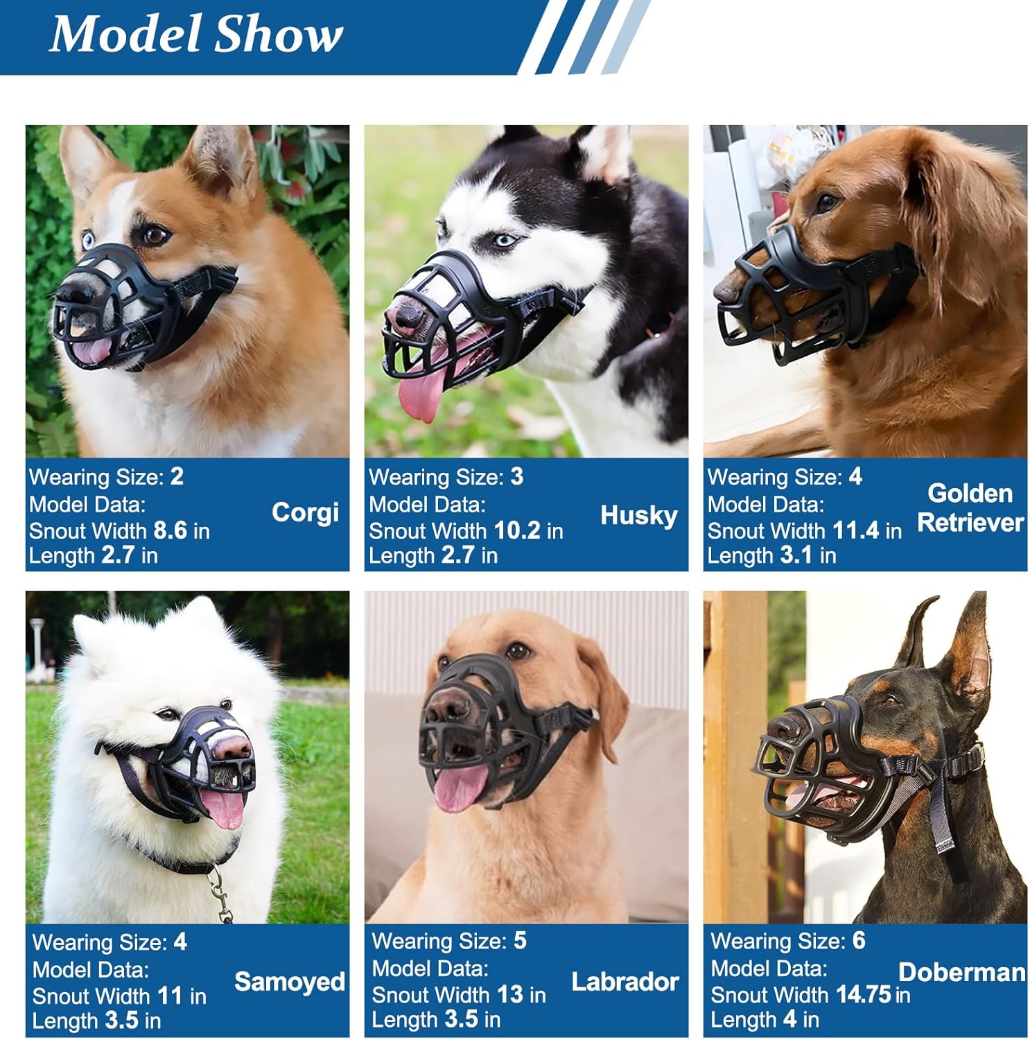 - PLEASE MEASURE BEFORE BUYING: Snout circumference and snout length must be measured both. If the circumference fit one of the sizes in the size chart, but the length is over the maximum range of this size (about 1 inch), you should choose the next size for a better fit. For long-snout dogs like Doberman, please make sure the dog's snout length fits the size