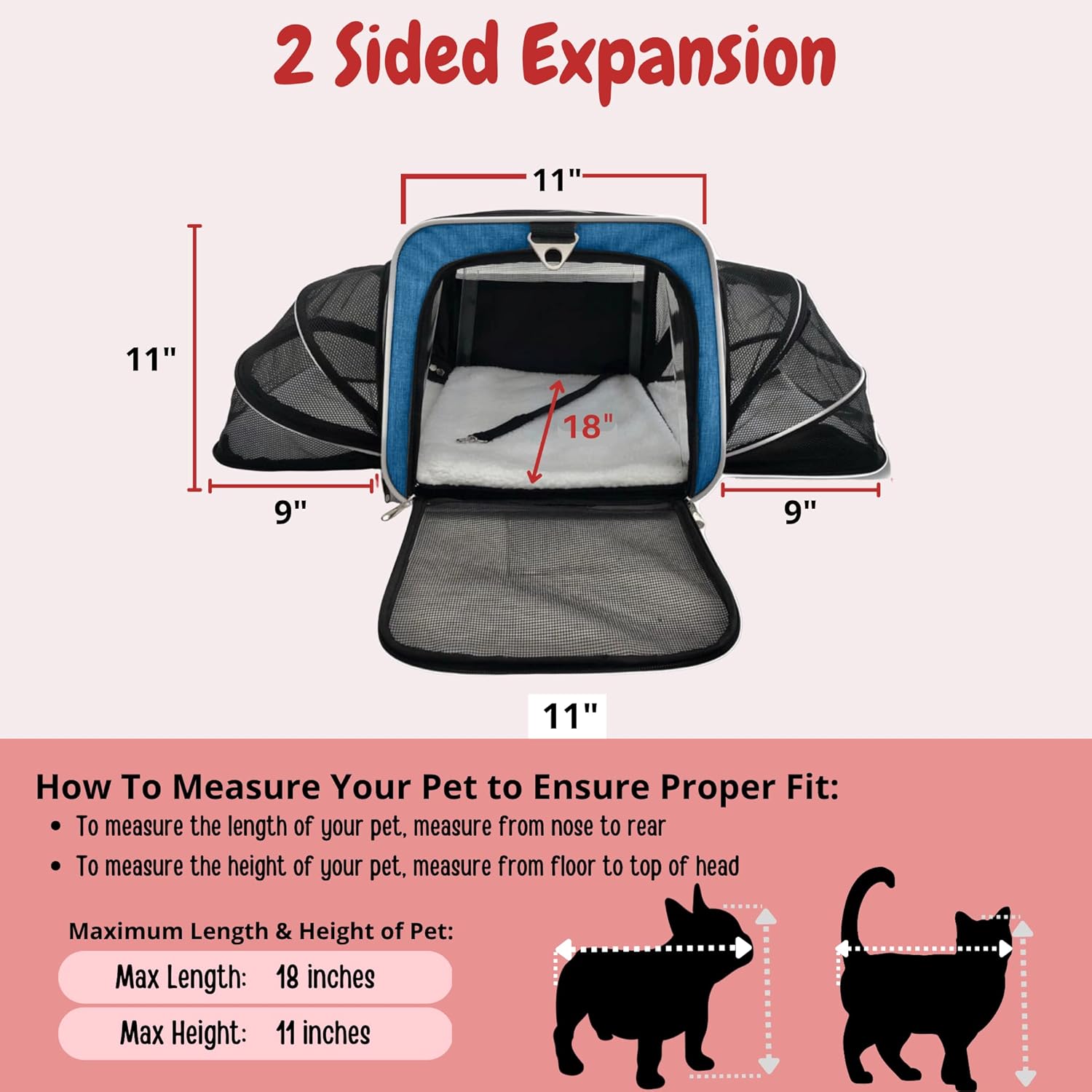Airline Approved Expandable Premium Pet Carrier on Wheels- Two Sided Expandable Rolling Carrier- Designed for Dogs & Cats- Extra Spacious Soft Lined Carrier! (Blue)
