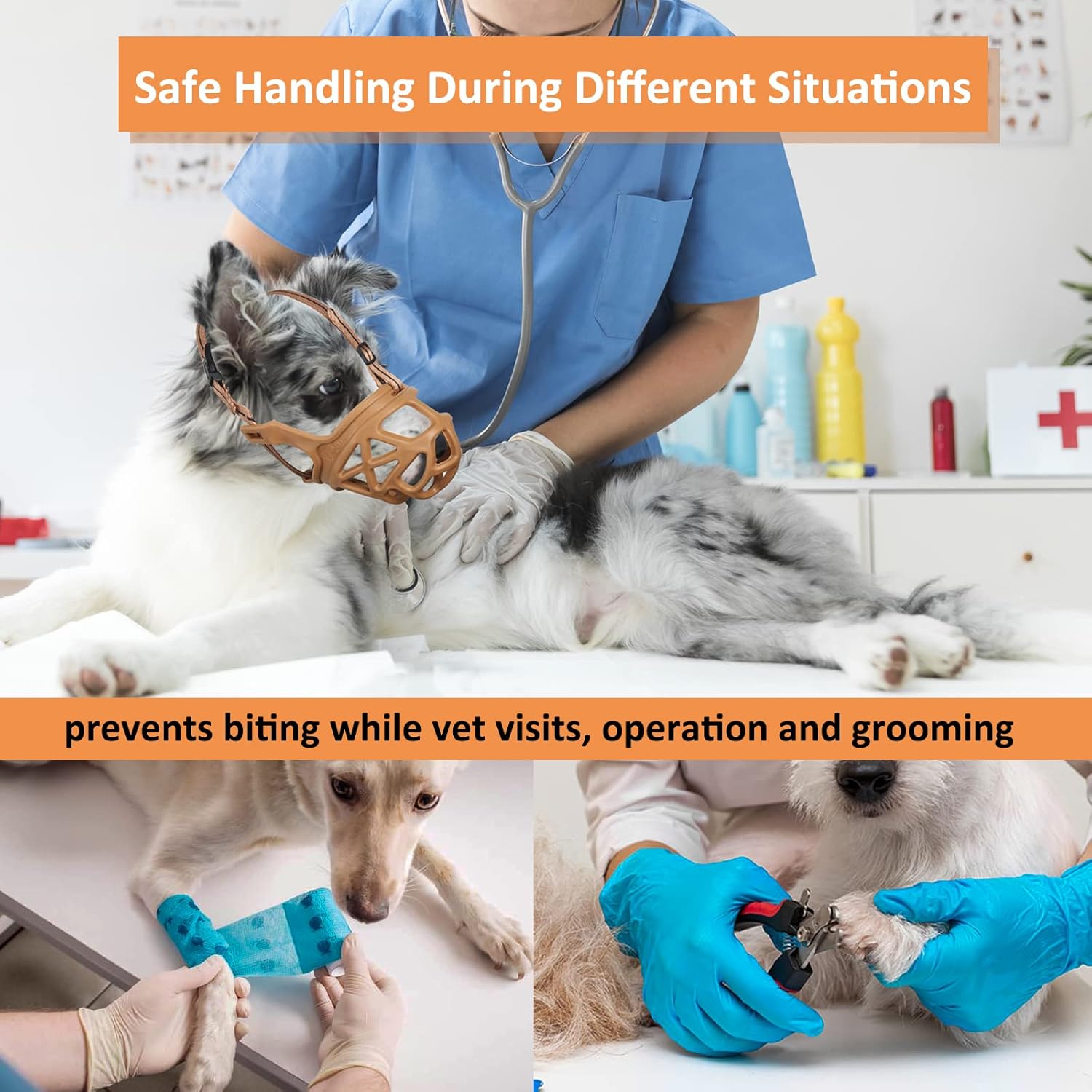• The Only Muzzle You Need: Say goodbye to your old muzzle. The BARKLESS practical muzzle has features you need to prevent your dog from nipping, destroying, fighting and digging and eating everything while the basket-style design gives all-around mouth protection allowing your pet unrestricted drinking and panting. This muzzle for dogs make it the ideal choice for reactive dogs’ daily walks, occasional use, dog park socialization, grooming, vet visits, training, traveling, and walking
