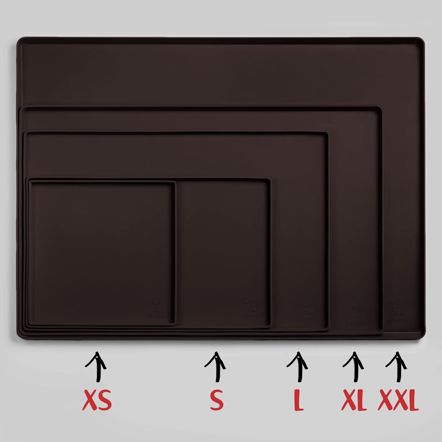 DogBuddy Dog Food Mat – Waterproof Dog Bowl Mat for Food and Water, Silicone Pet Feeding Mats for Floors, Non-Slip Placemat with High Edges for Dogs Bowls, Puppy Essentials (XL: 28" x 18", Coffee)