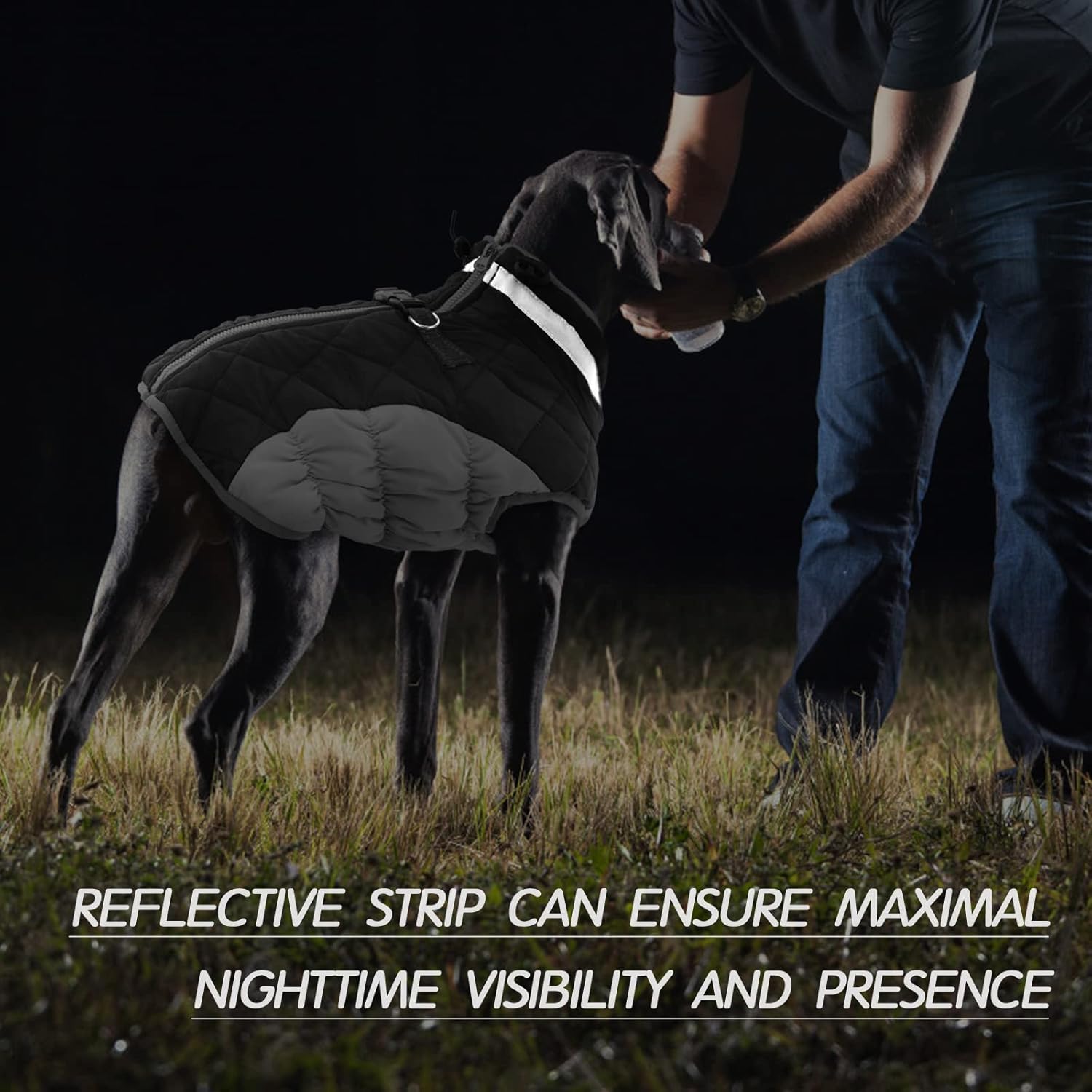 FUAMEY Dog Coat for Large Dogs,Waterproof Dog Winter Jacket with Harness Built in Puppy Cold Weather Coats Reflective Pet Vest with Zipper Warm Fleece Dogs Snowsuit Windproof Black XL