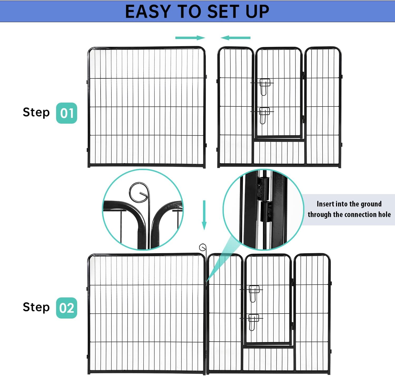- ✔【A LARGE SECURE AREA】Our puppy playpen is great and keeps your pets safe from others, plenty of room for your pets and the sides of dog playpen are tall enough for you to reach into the enclosure. Have peace of mind to contain your pet within the enclosure. You can connect more pet playpen together to cover a larger area. puppy playpen dog playpen pet playpen