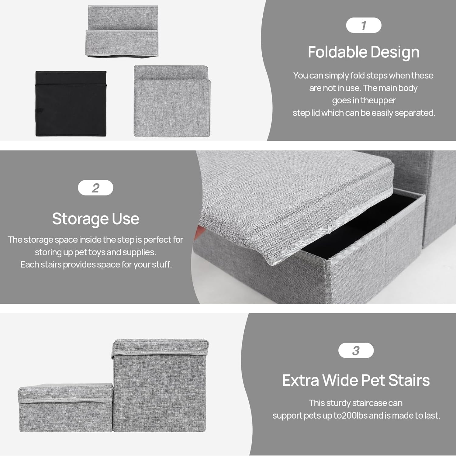Foldable Dog Stairs/Steps 2-Tier Pet Steps Storage and Adjustable Steps for Small Medium Dogs Pet Steps Storage Stepper for High Beds Sofa Pet Dog Cat (2 Step-Light Grey)