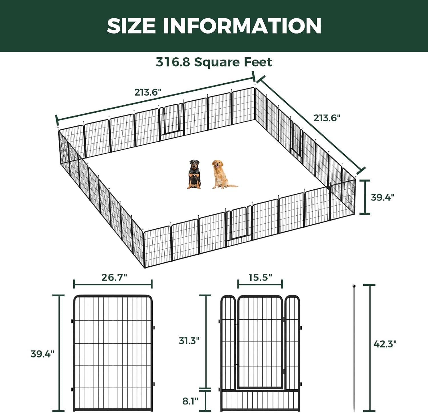 - Super easy to assemble: It won’t take you more than 5 minutes to assemble these portable dog fences as well as pack them away due to the rod-connected design. Meanwhile, panels can be added or removed freely to give you a fully flexible area and arrange the dog pen in any shape you need.