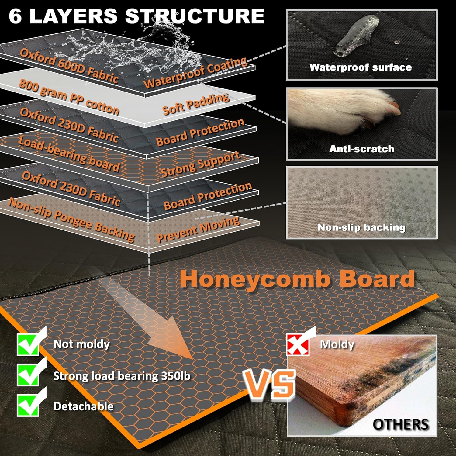 • 【Simple Installation And Pack Up】Our package includes:1x back seat extender for dogs, 1x storage bag, 2x buckles, and 2x seat belts. The hard bottom dog hammock for car is easy to install and disassemble. All you need to do is to spread the backseat extender for dogs onto the backseat and insert seat anchors. Then buckle up the buckle and hang the strap on the car seat headrest pole and adjust all strap length to fit your car size. The back seat dog bed is easy to disassemble, fold up and store in the car's rear outer box.