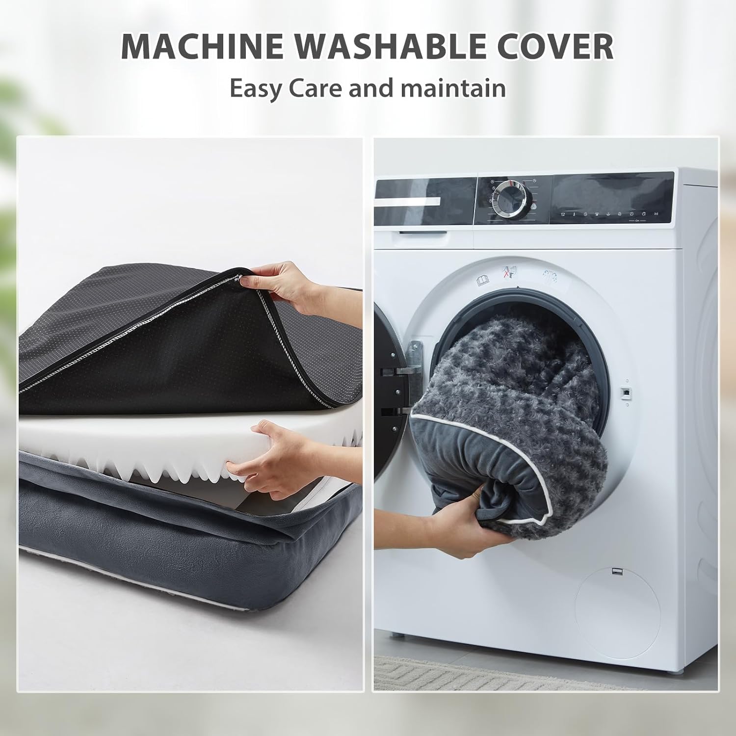 - EASY TO CLEAN&NON-SLIP: The sofa dog bed comes with a removable and washable dog pillow cover to ensure that the big dog bed can be easily cleaned. The washable dog bed has a durable zipper that allows for easy removal and reattachment. The non-slip rubber particles of the waterproof dog bed bottom hold it in place on the floor without sliding.