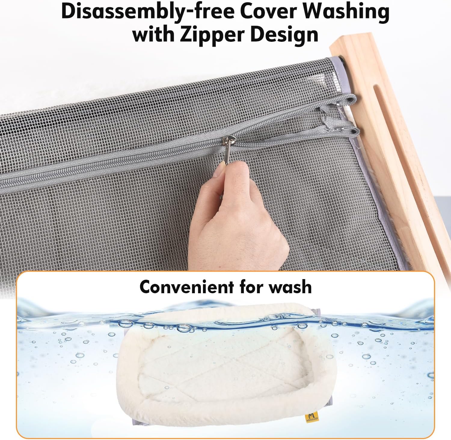 - Comfortable Cushion Bed Cover: This cat window perch is upgraded with thickened fluffy cushion bed cover, which give cats more comfort and safety while sleeping on it. The cover is made of soft plush fabric and cotton, perfect for keeping warm. Let your cats feel more comfortable while lying in this resting seat. It is of Velcro tape design, easy to remove for wash.