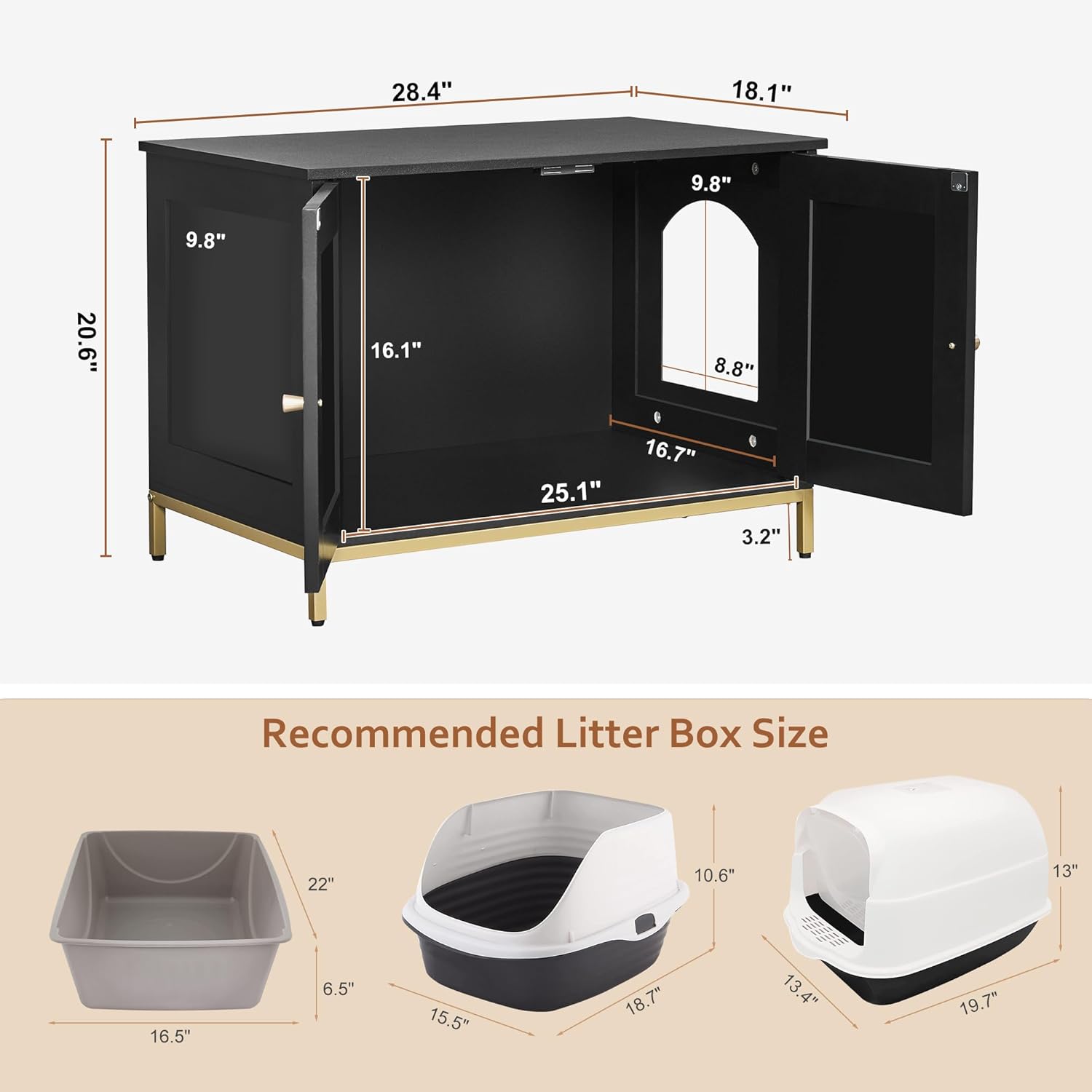 • Modern style: The cat litter box cabinet features black finish and metallic gold-colored metal frame, adding an elegant and stylish touch to your home decor. Its minimalist design and exquisite detailing inject a touch of luxury and sophistication into your living space