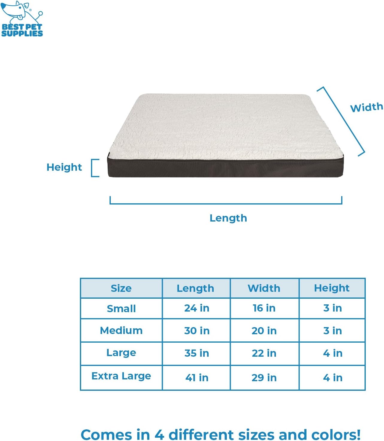 Best Pet Supplies Cute Dog Crate Mat Flat Bed with Waterproof Exterior, Thick Orthopedic Egg Foam Mattress, and Soft Sherpa Fleece Cover for Small, Medium, and Large Breeds - Brown, 41X29X4
