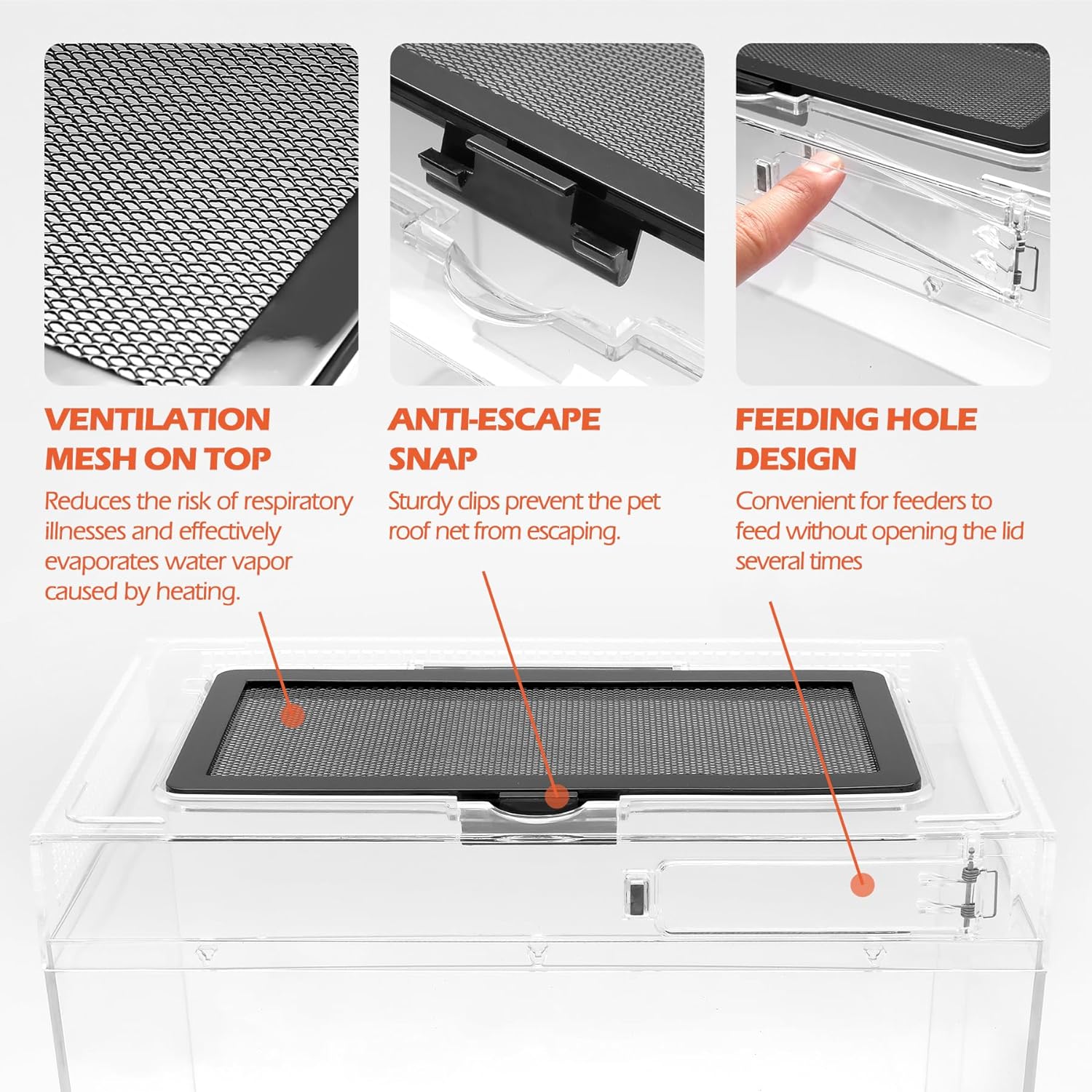 • Designed for Easy Feeding: Our amphibian feeder features convenient feeding holes and escape-proof door locks, eliminating the need to open the lid multiple times for feeding. It's designed to make feeding easier and more convenient for caretakers