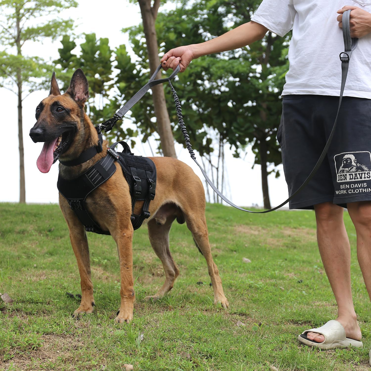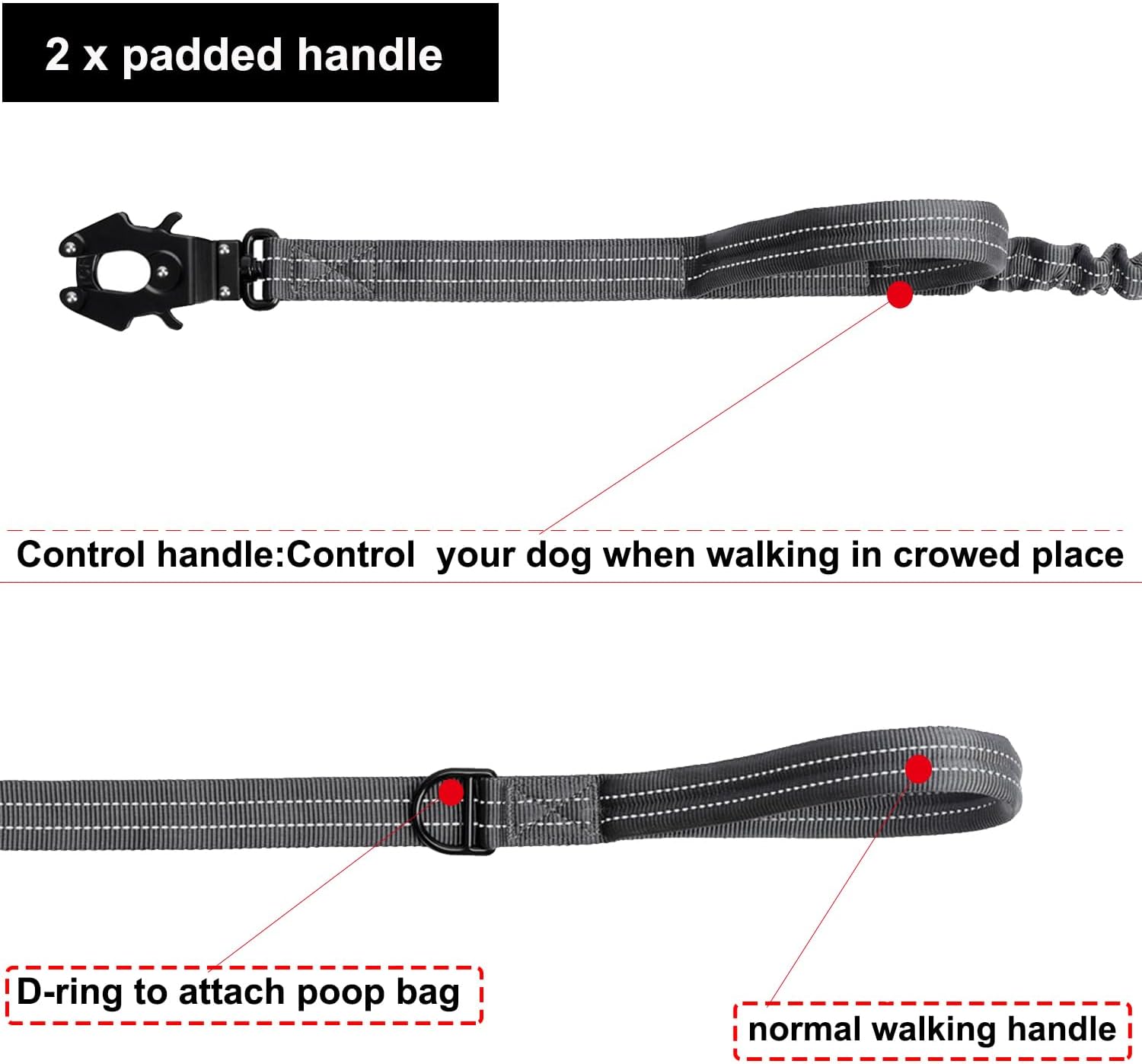 ICEFANG Tactical Dog Leash,K9 Training Walking Bungee Lead with 2 Control Handle,Heavy Duty Quick Release Metal Clasp,for Medium Large Breed (Reflective Grey, 6 FT)