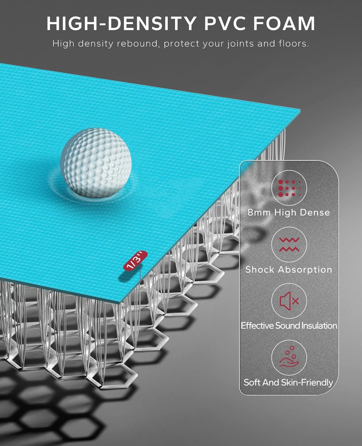 • Extra Cushion & Comfortable:Our large exercise yoga mat adopts high-density foam technology, up to 8mm thick (greater than ⅓ inch).Very soft and skin-friendly. High-density workout mat can protect your knee and other joints during intense aerobic exercise, and play a role in shock absorption. Excellent durability, tear resistance and wear resistance, designed for high-intensity training. It can also reduce noise and protect the floor