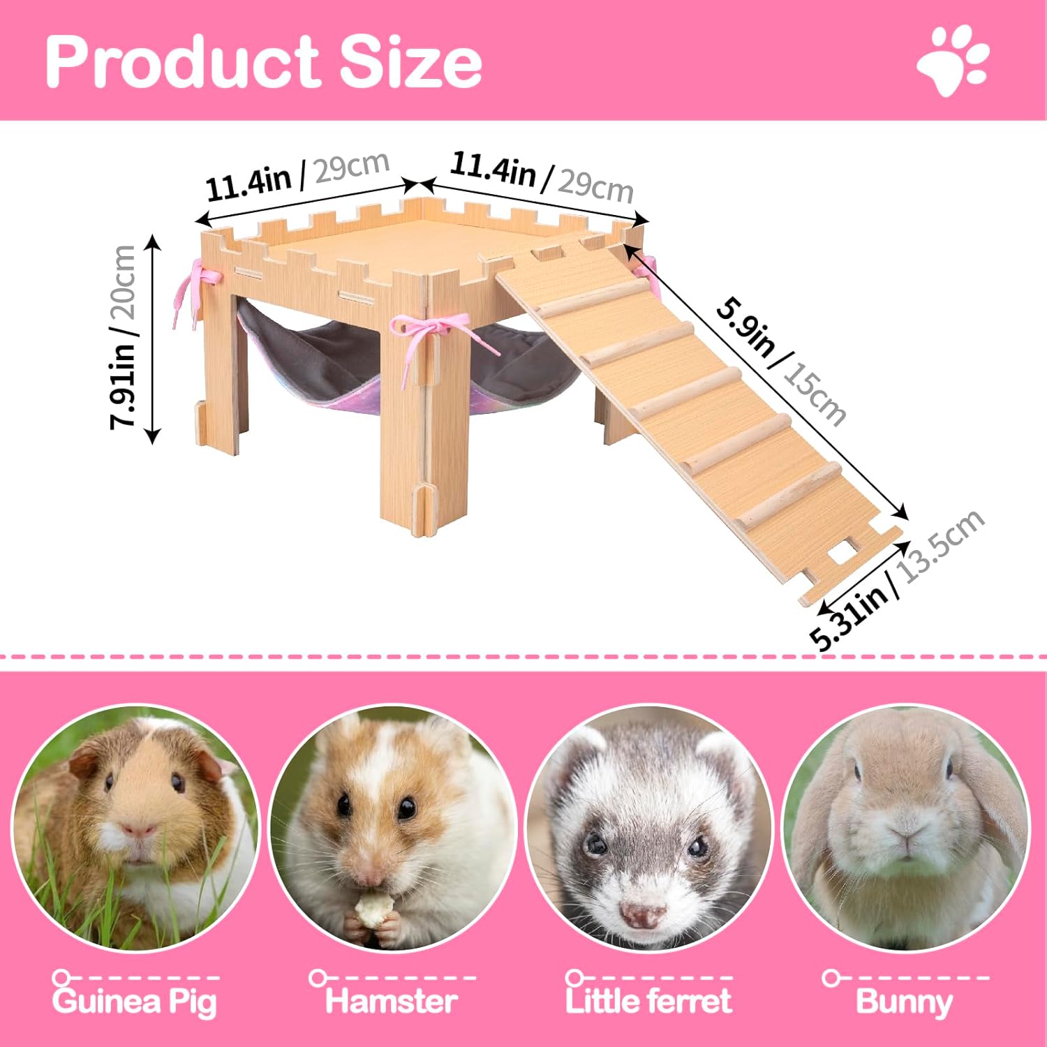 • 【EASY TO ASSEMBLE】This guinea pig toy not only looks simple and cute, but it is also very easy to assemble. The ears on both sides of the board are designed in reverse to prevent them from falling apart after installation.The hammock simply straps to the legs.