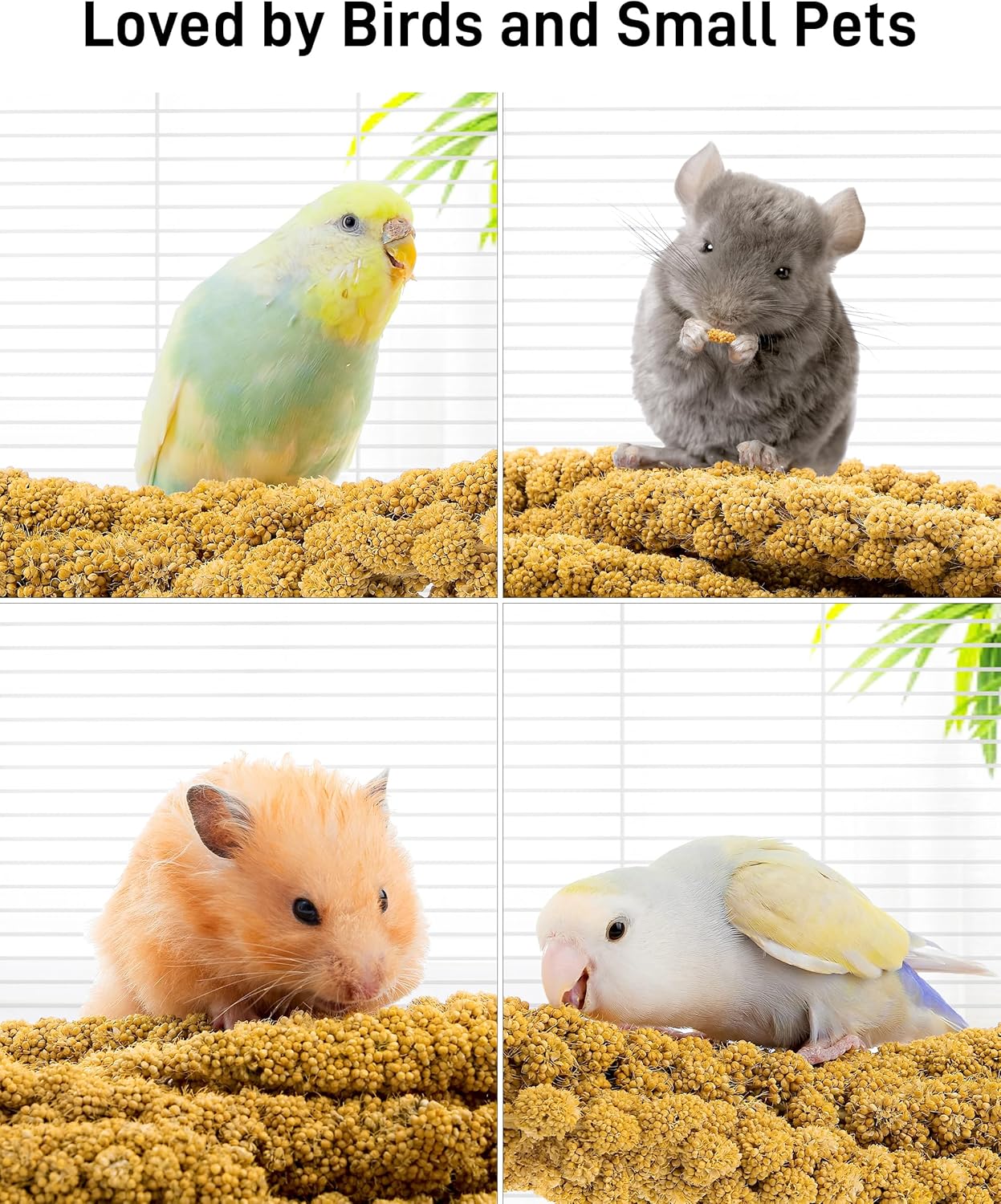 - 【Loved by Birds and Small Pets】Our millet sprays aren't just for birds—they’re a hit with small pets too! Ideal for parakeets, parrots, lovebirds, cockatiels, canaries, budgies, finches, hamsters, chinchillas, and more. Treat your feathered and furry friends to the best with BUCATSTATE’s premium supplies.