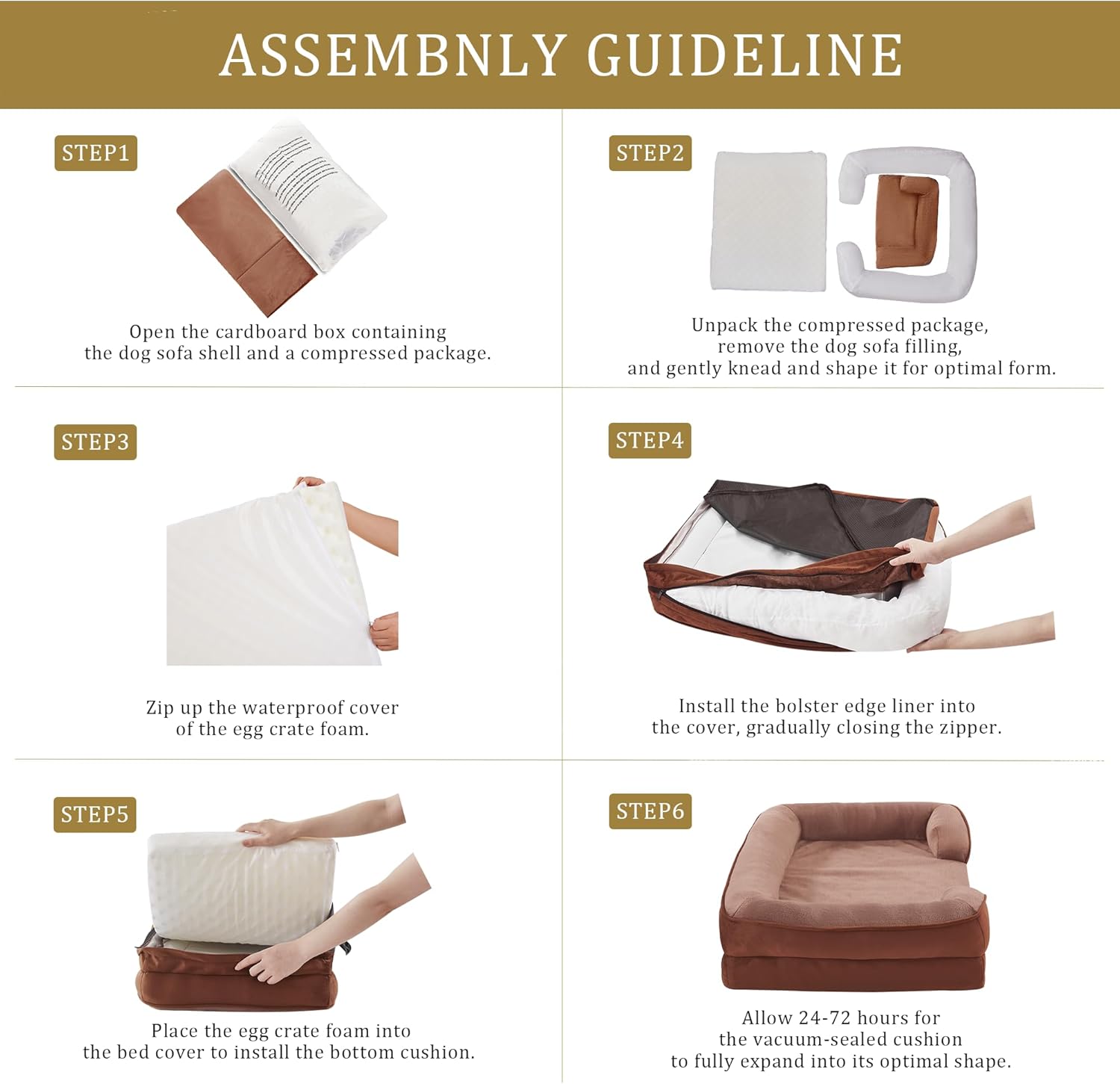 - Suitable Size: Suitable for All Breeds: 28"W x 23"L x 6.5"D; Sleeping surface: 20.5"W x 19"L (Up to 30lbs); When selecting the product size, please pay attention to the sleeping area. Please wait for 48 hours for full expansion to ensure optimal height and comfort before using.