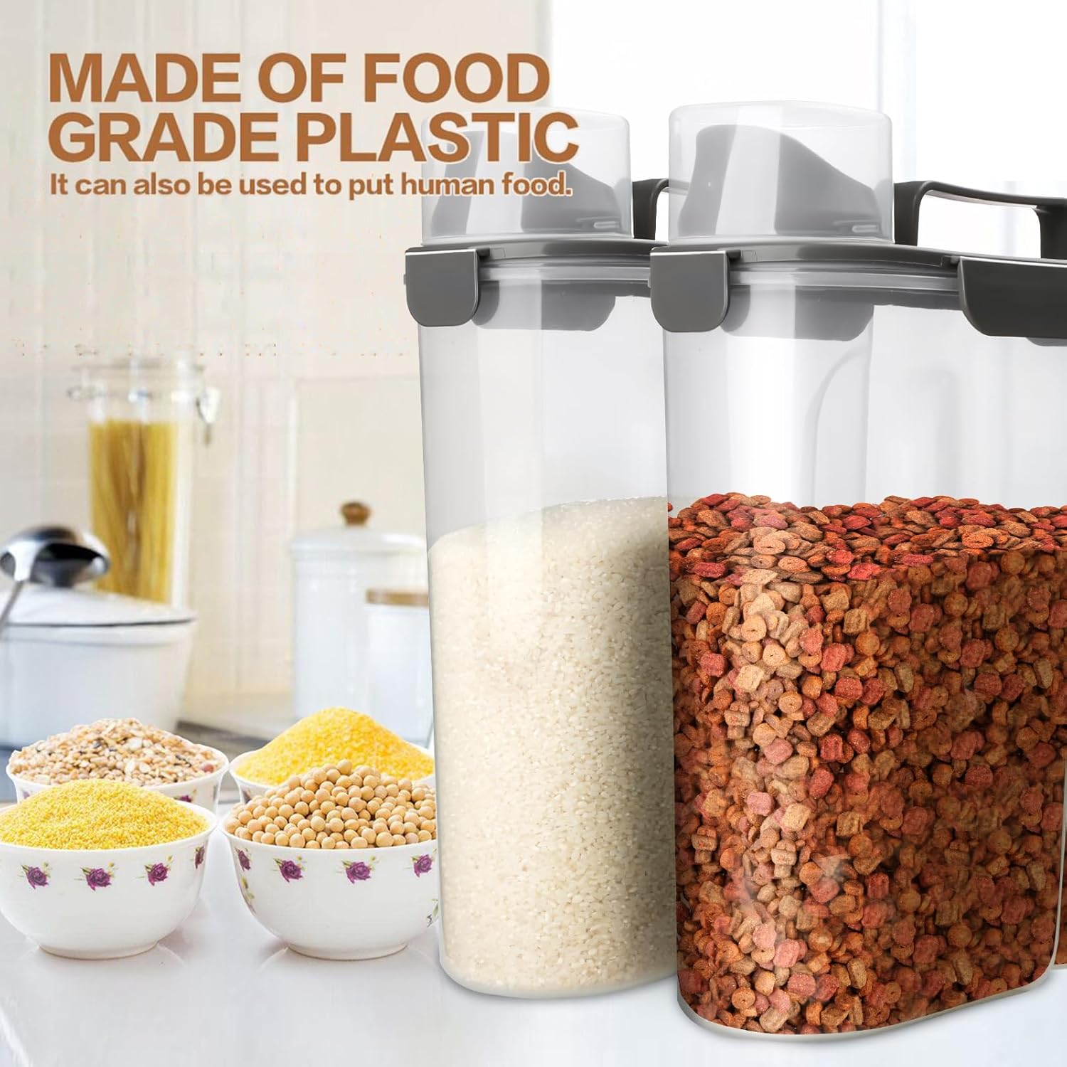 • 2 PACK Pet Dry Food Storage Container - It come with a 6Qt and a 3Qt Dog Food Container. The 6Qt dog food container can hold about 5lb pet food or 10lb rice. The 3Qt dog food container can hold about 3lb pet food or 5lb rice. It also works well for regular kitchen food. Such as rice, flour, cereal, beans, nuts, snack and more