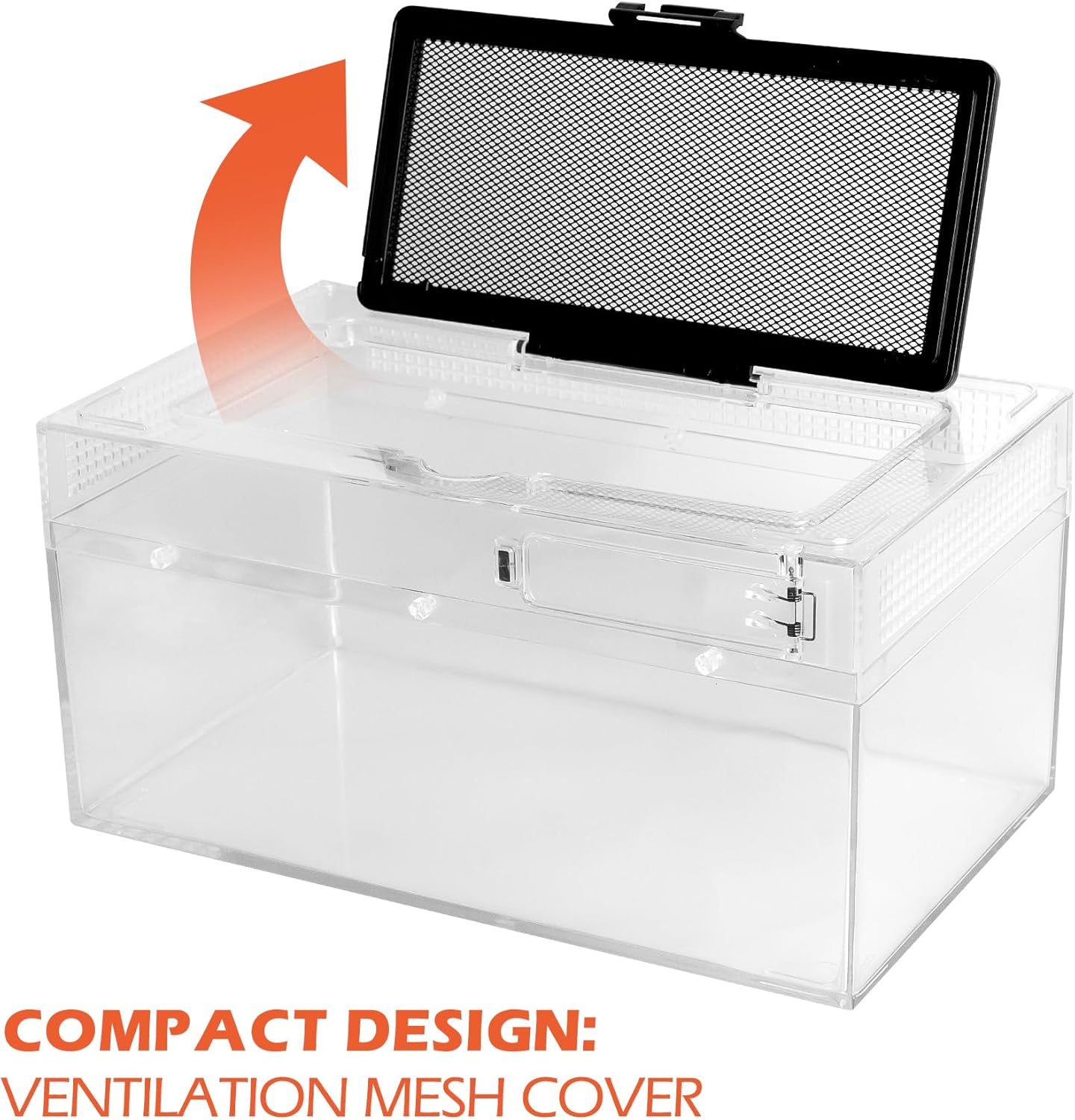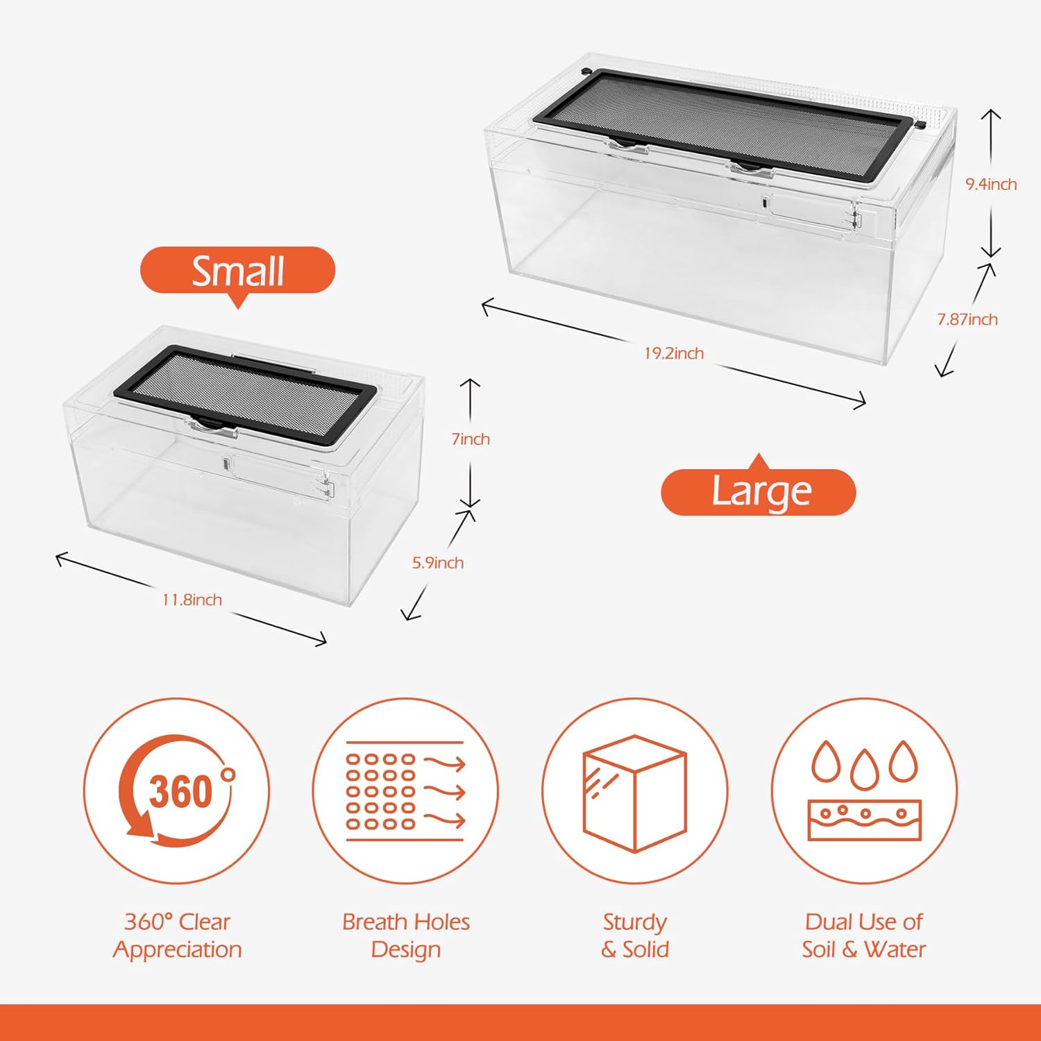 • Design Details: Unlike standard acrylic terrariums, our PC terrarium features a one-piece, unbreakable design. It’s waterproof, suitable for both desert and rainforest habitats, and includes a feeding cover on top for easy access and escape prevention