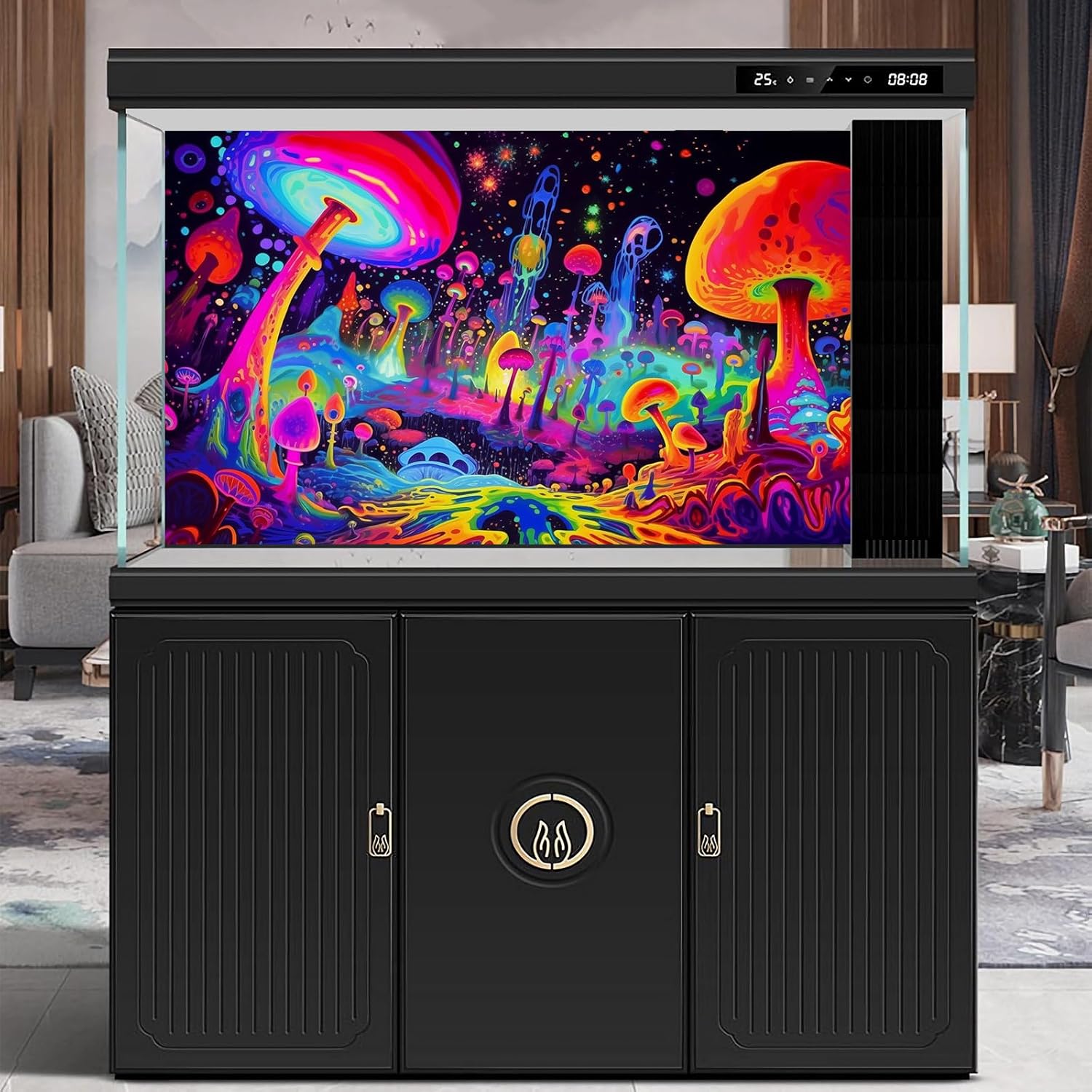 Fantasy Mushrooms Aquarium Background Abstract Mysterious Mushroom Landscape Terrarium Background Amazing Rainbow Mushrooms Theme Fish Tank Backdrop Poster Wallpaper Decorations Vinyl 36x20in