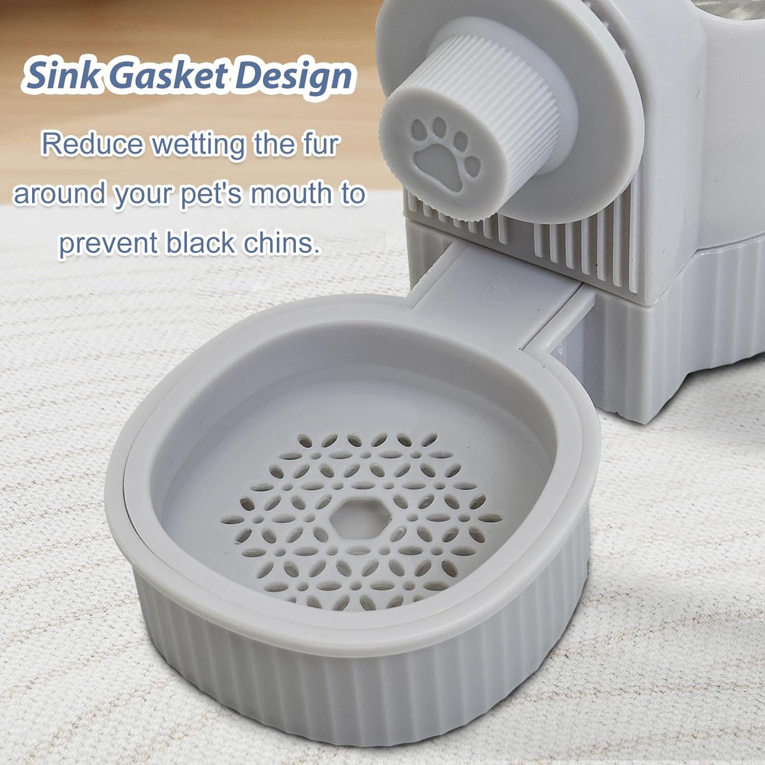 - š¹ [Keep Fur Dry]: Bunny water dispenser sink hollow matting reduces wet fur when your pet drinks water and prevents black chin. It also filters out fallen pet hair and impurities