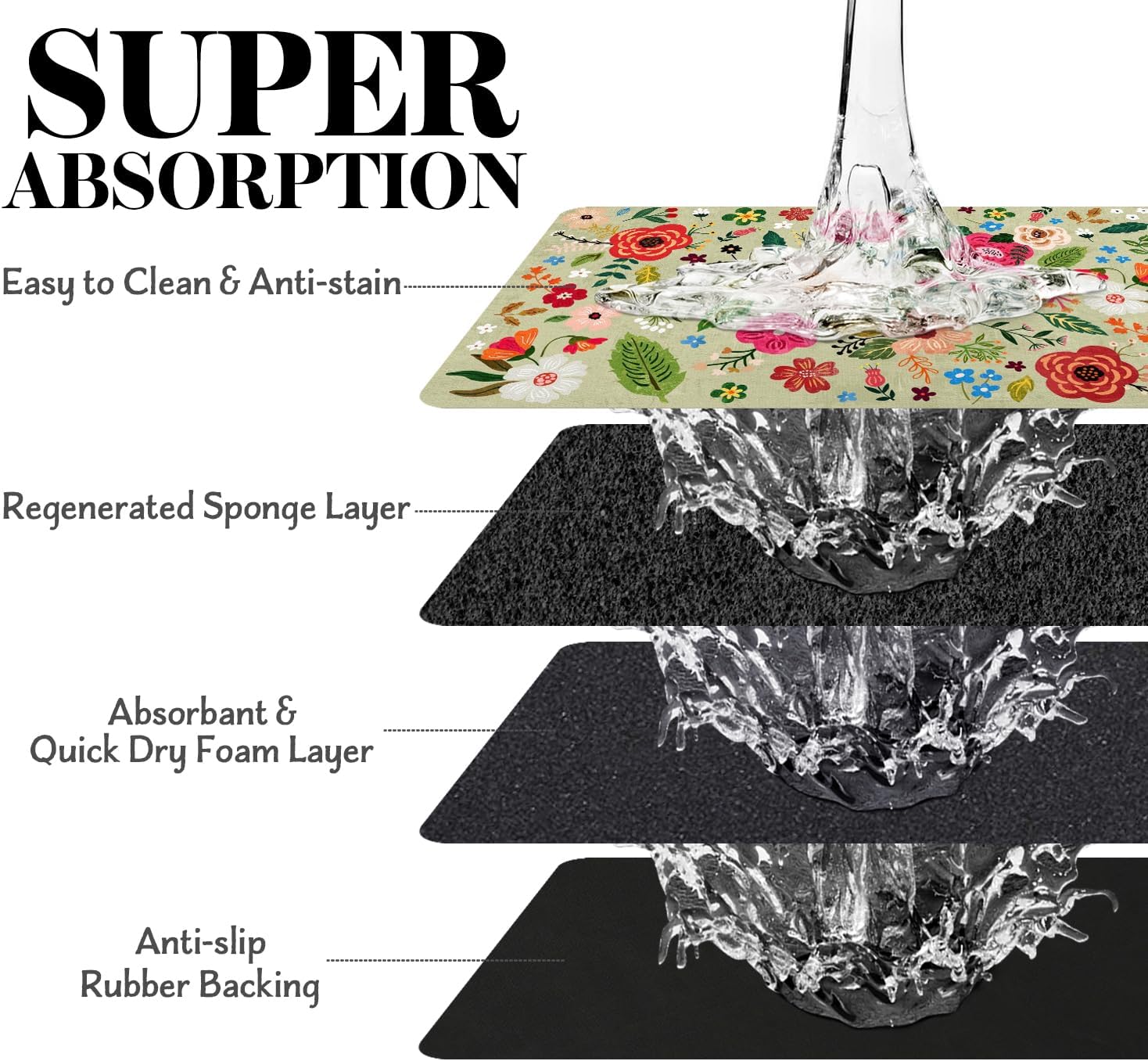 - Super Absorption: The diatomaceous earth dog mat for water bowl can absorb spilled water without leaving traces and dry quick, avoid wetting pet paws even for messy drinkers. And it does not attract pet hair like traditional silicone dog bowl mat.