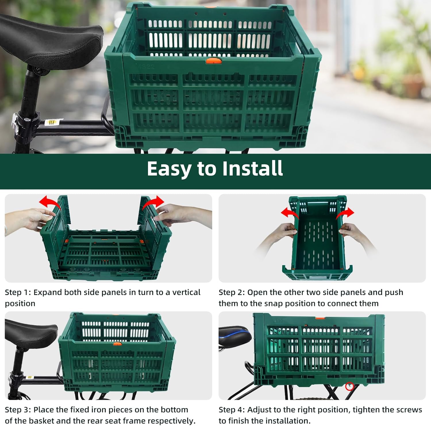 - 【Trusted Bicycle Baskets】:Folding rear bike basket is made of PP material,which is inherently strong, hard and wear-resistant,avoiding the shortcomings of metal bike basket erosion and metal rust, and at the same time,it can easily carry up to 30KG of weight!Ideal for city travel,exercise,commuting and more.this rear bicycle cargo rack will provide you with great reliability and is a bike basket you can trust