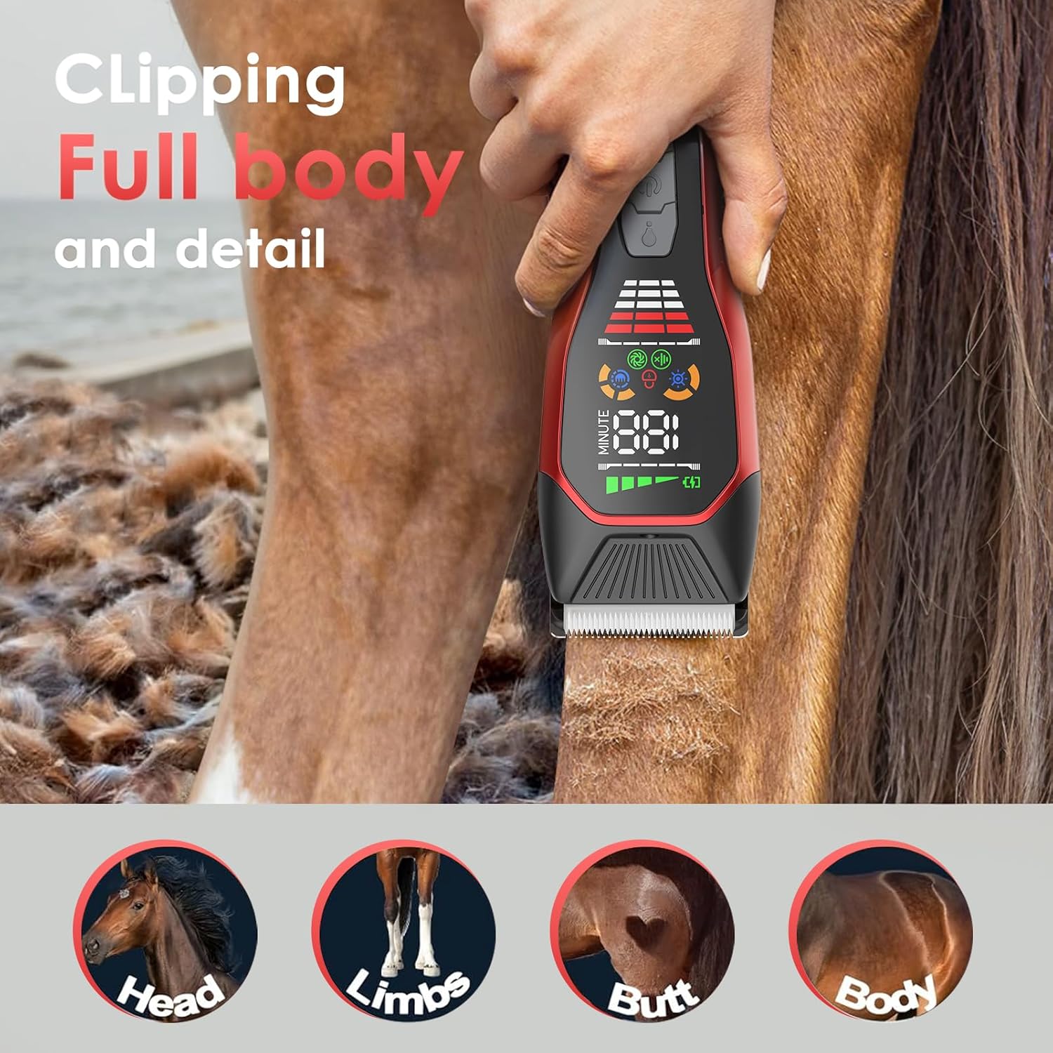 - 2 CLIPPING MODES FOR HEAVY COATS&LED LIGHTHING-2-speed setting is easy to use(6000-6500RPM),allowing you to adjust the speed based on the thickness and sensitivity of your horse's hair,enough power to handle thick fur without snagging or pulling,press LED light button switch can change the brightness of the light or turn it off as needed