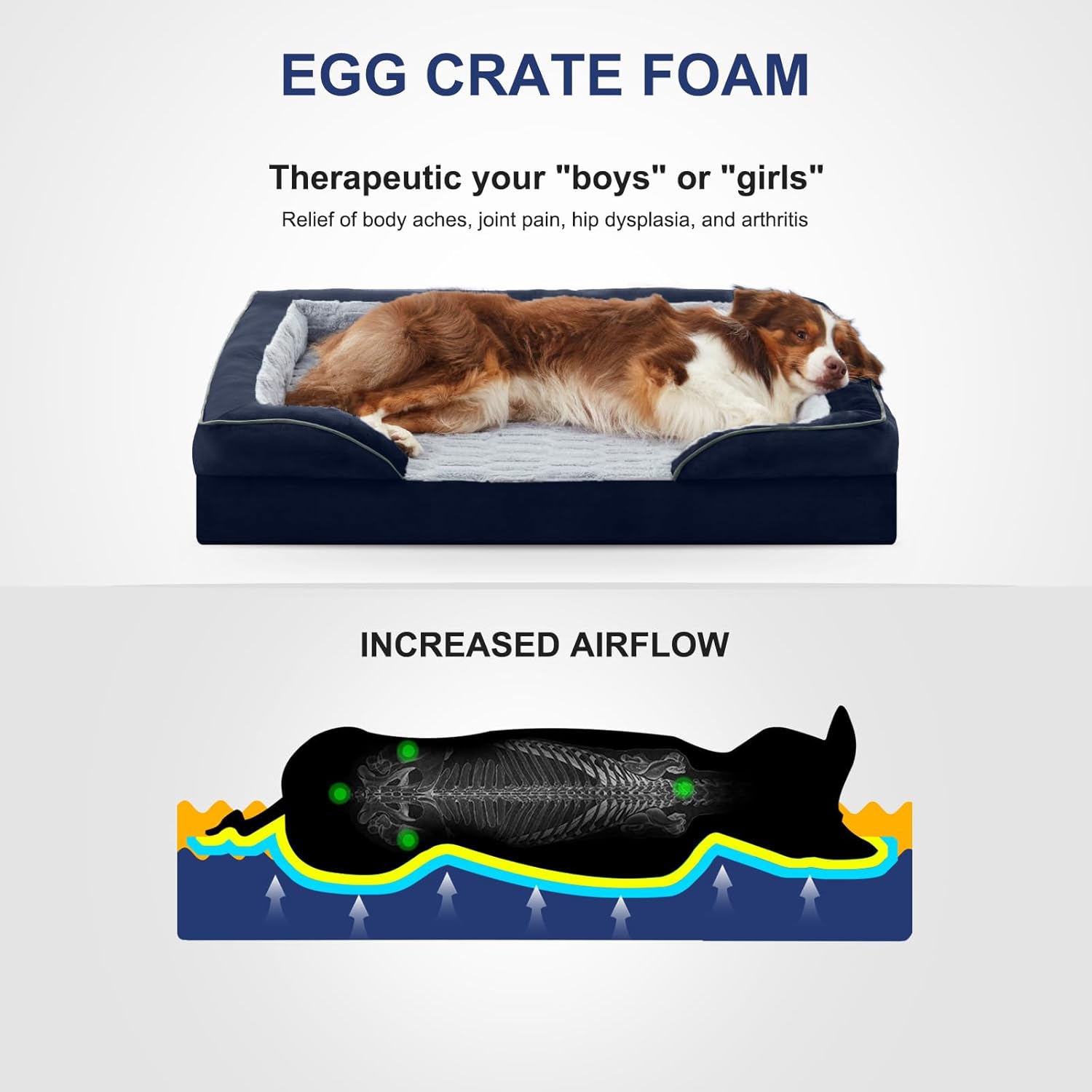 • Orthopedic Support: Our orthopedic dog bed features high-density egg foam to relieve pressure points, helping to evenly distribute weight and providing great support for painful joints and muscles. While fluff-filled bolsters support the neck, back, hips, and joints; helps ease discomfort and promote restful sleep.
