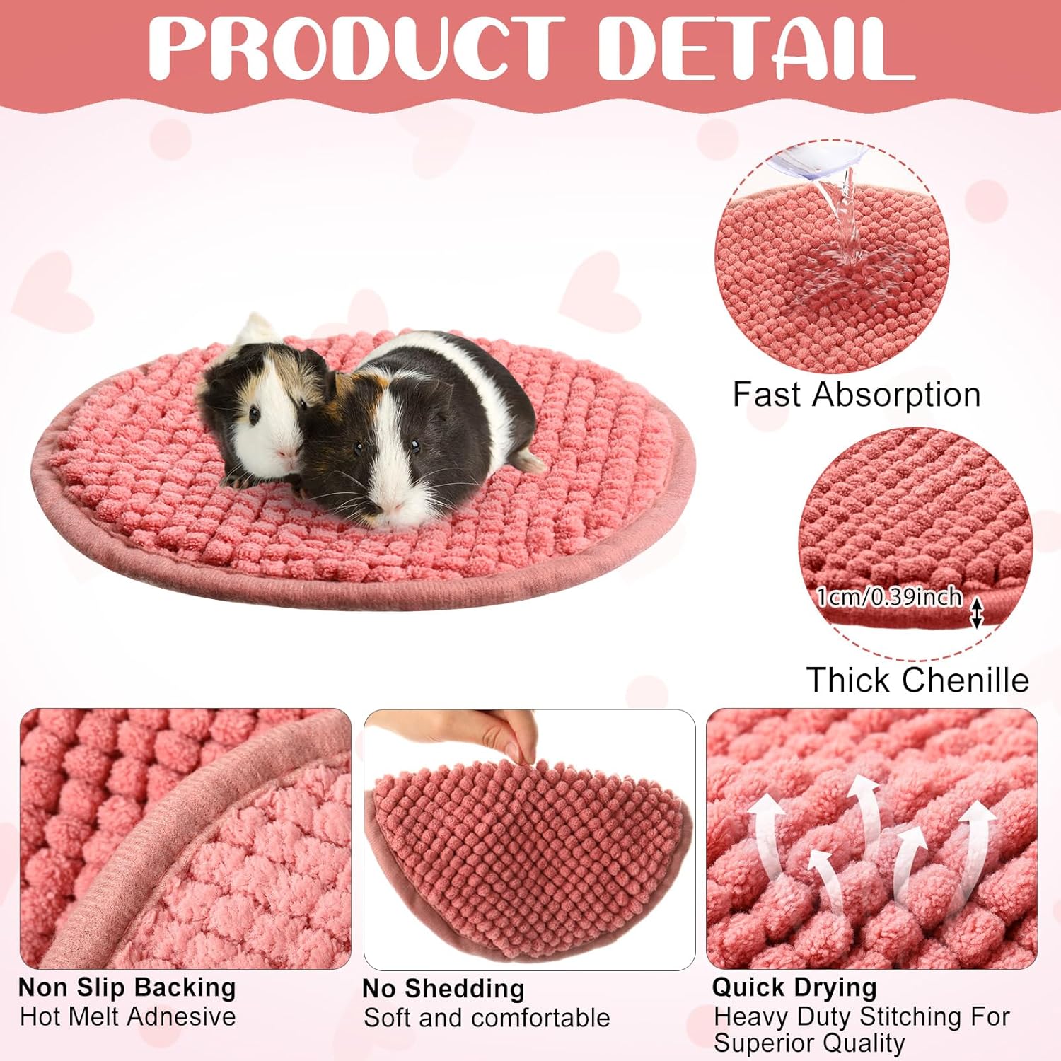 - Absorbent Material: our guinea pig pee pads washable are made of microfiber chenille material, with good density and instant water absorption, which can automatically absorb the water carried by the guinea pig and keep your small pet clean, dry and comfortable