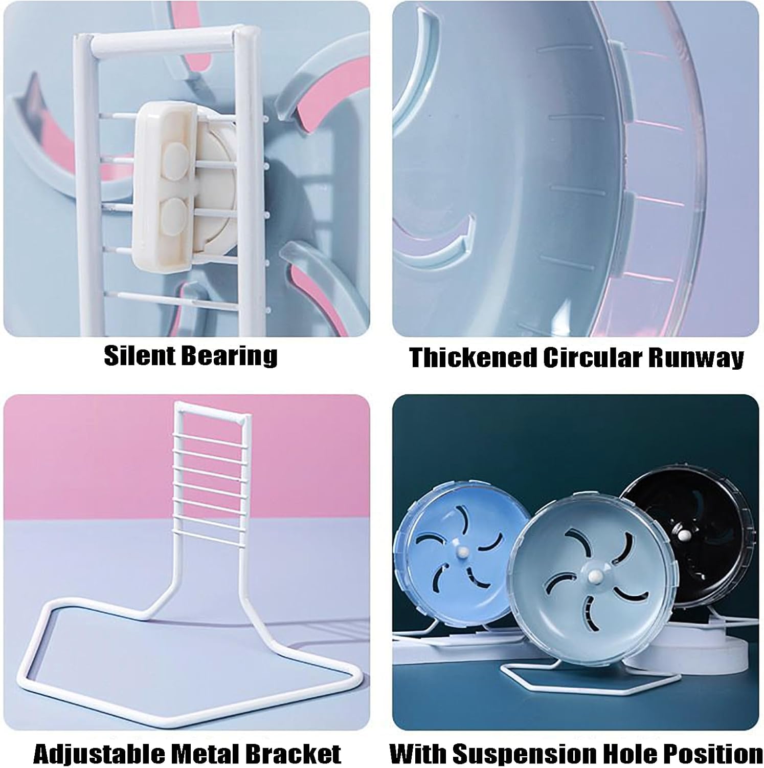 • Adjustable Stand:This hamster wheel comes with an adjustable stand to ensure that the hamster is very stable and durable when in use. The height of the stand can be flexibly adjusted according to the actual size of the hamster cage