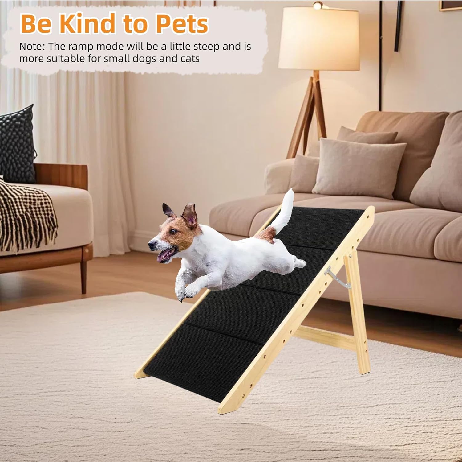 - 2-in-1 Design: This pet ladder features a 4-step design, making it perfect for elderly or small pets to reach beds, sofas, cars, and more. It can quickly transforms into a ramp, making it more suitable for cats or medium large dogs to climb and walk