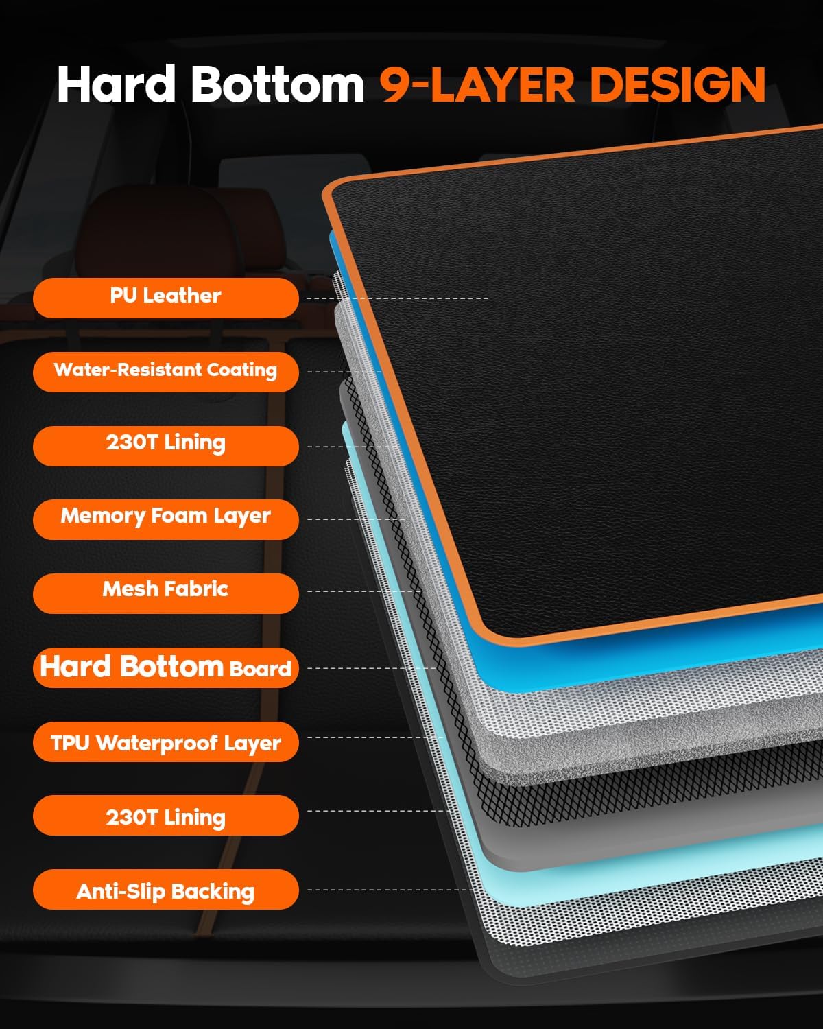 - 【Anti-Slip and Stability Features】Designed with seat anchors, a non-slip backing, and grip dots, this cover stays securely in place, even in SUVs, trucks, or cars. The included door protection panels guard your car doors from scratches, while the stable design is also ideal for kids or child car carriers, making it a versatile accessory for your vehicle interior