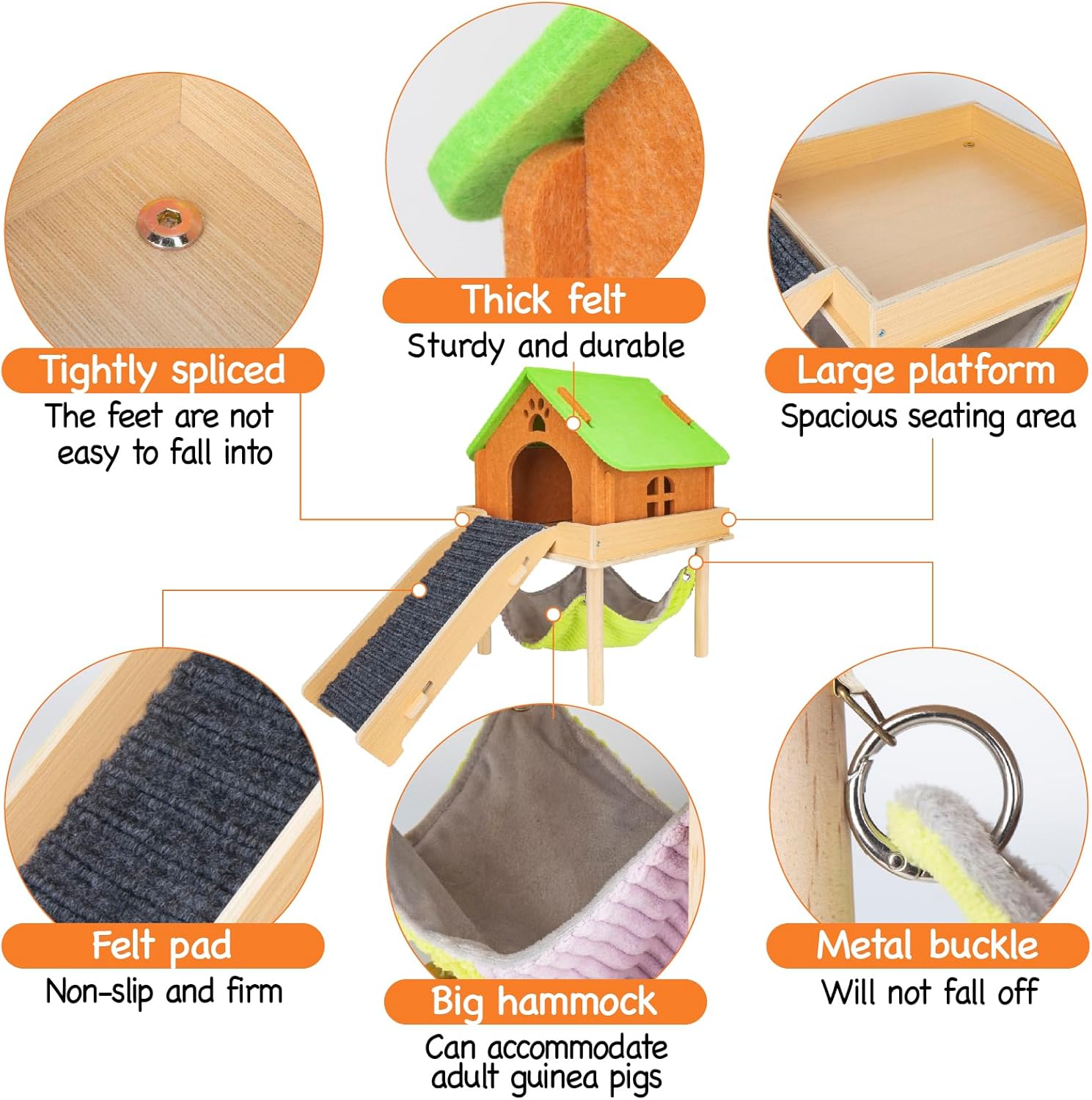 - 【NATURAL WOOD & THICKENED FELT】Our guinea pig cage accessories are made of natural wood.Not only are they durable,but they are also safe for your furry friends,ensuring they can enjoy activities without worries.The thickened felt is sturdy and not easy to break,and the included pet hair can be easily removed with the lint roller.