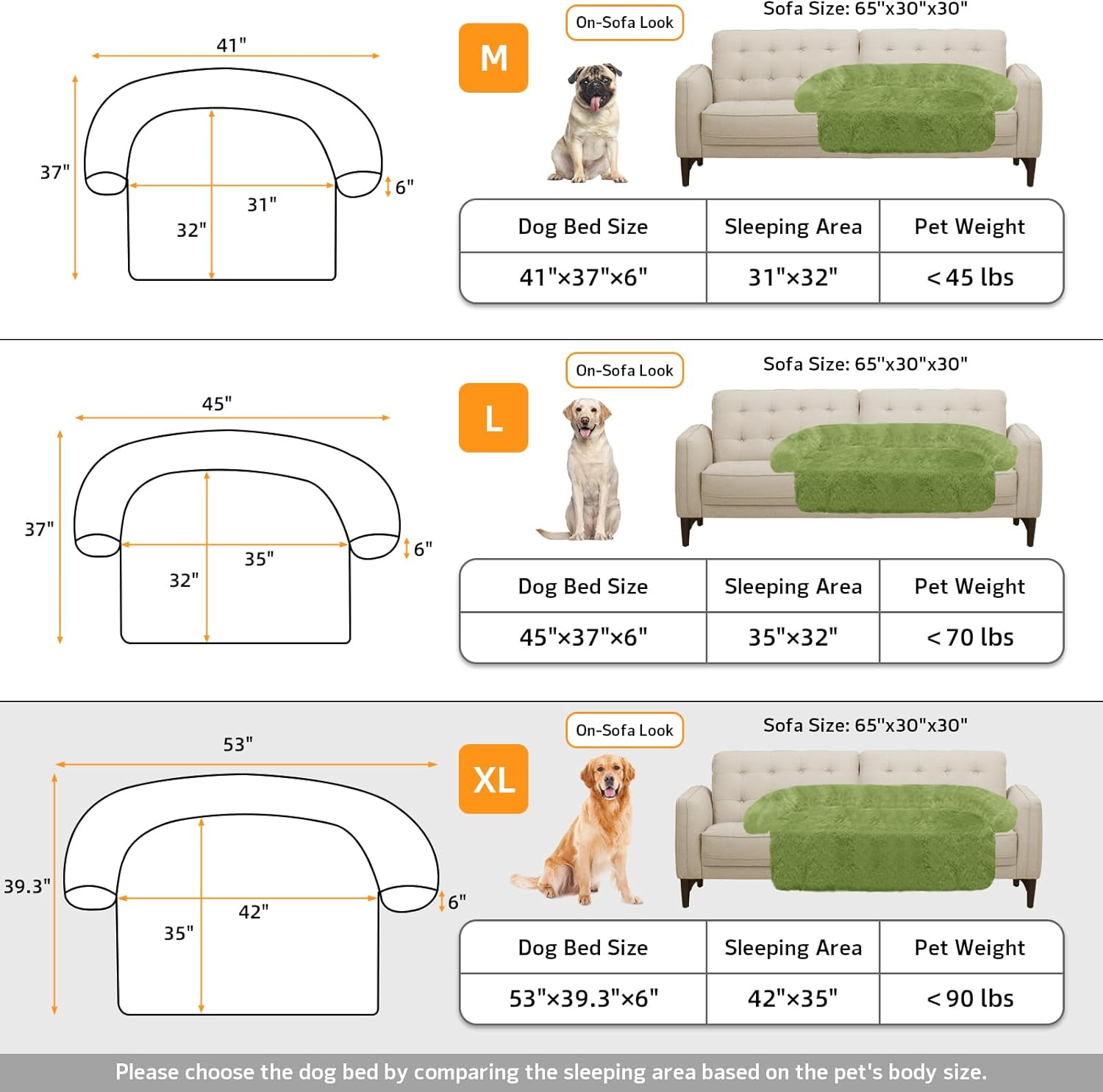 • 【Multiple Size Selection】The couch pet bed has 5 sizes for you to choose from. M: 41"x37" dog bed for medium dogs. L: 45"x37" dog bed for large dogs. XL: 53"x39.3" dog bed for large dogs. We have enlarged the sleeping area for pets to give dogs more space.