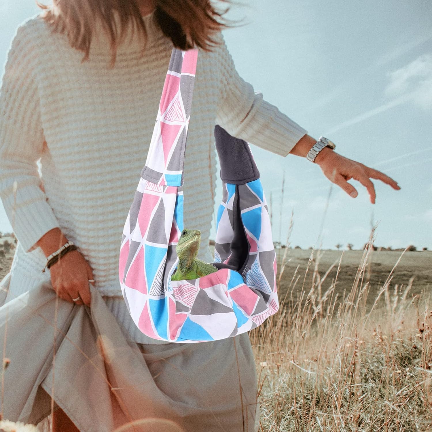 BESPORTBLE Adjustable Reptile Sling Bag for Bearded Dragons - Breathable Pet Carrier with Shoulder Strap for Travel, Hiking, and Outdoor Adventures, 25.59 X 7.87 X 5.90 Inches