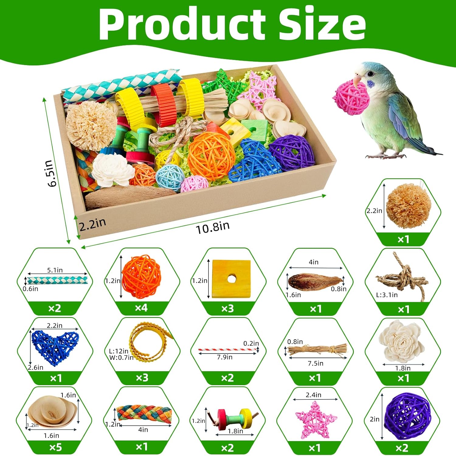 - EXPLORTION FUN: In the process of playing and chewing, birds explore the fun of diversified materials, which can improve the thinking agility of birds and develop intelligence