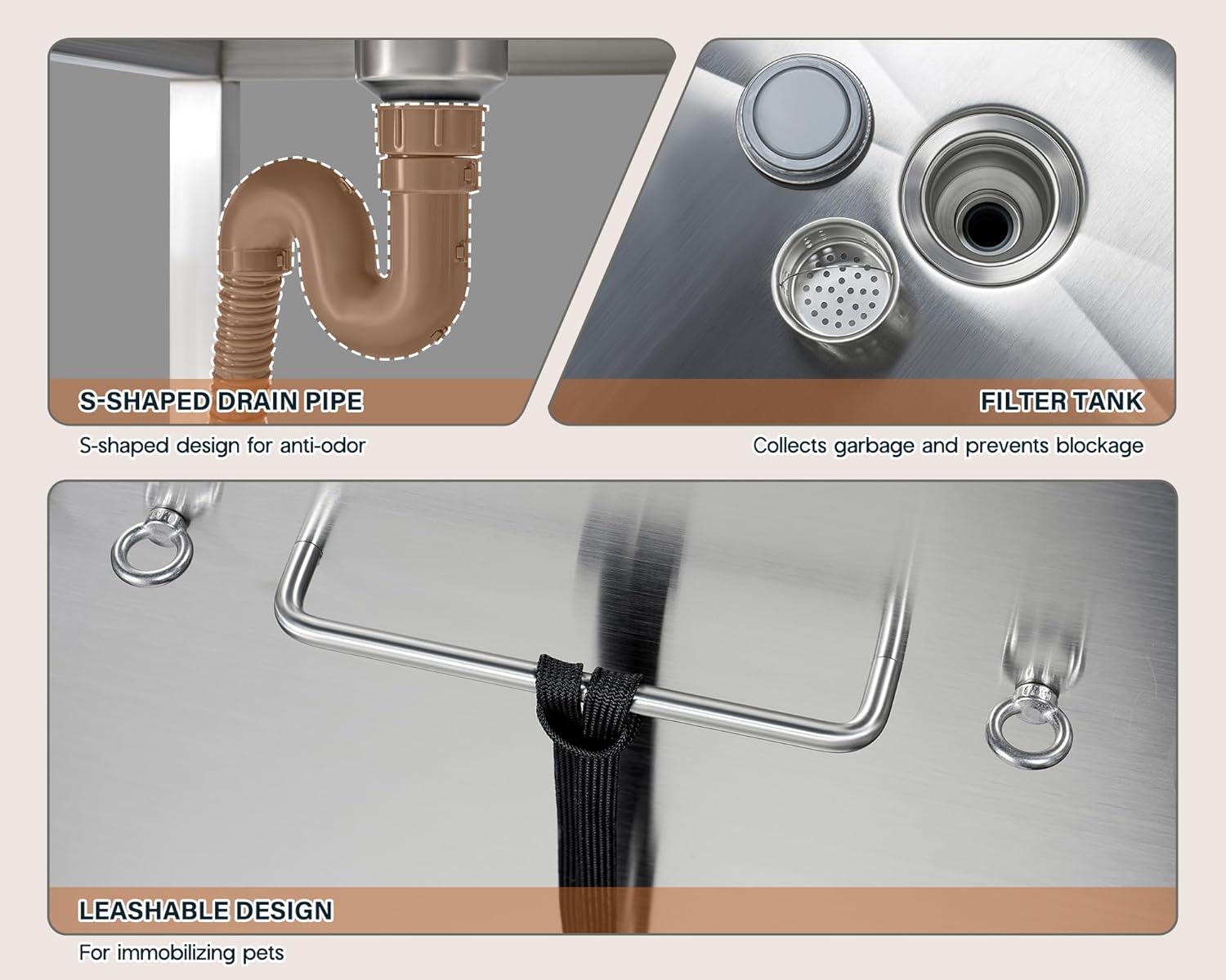 - Durable and Long-Lasting: The Dog Wash Tub is crafted from high-quality 304 stainless steel to ensure superior durability. Easy to clean for quick disposal of post-bath residue.