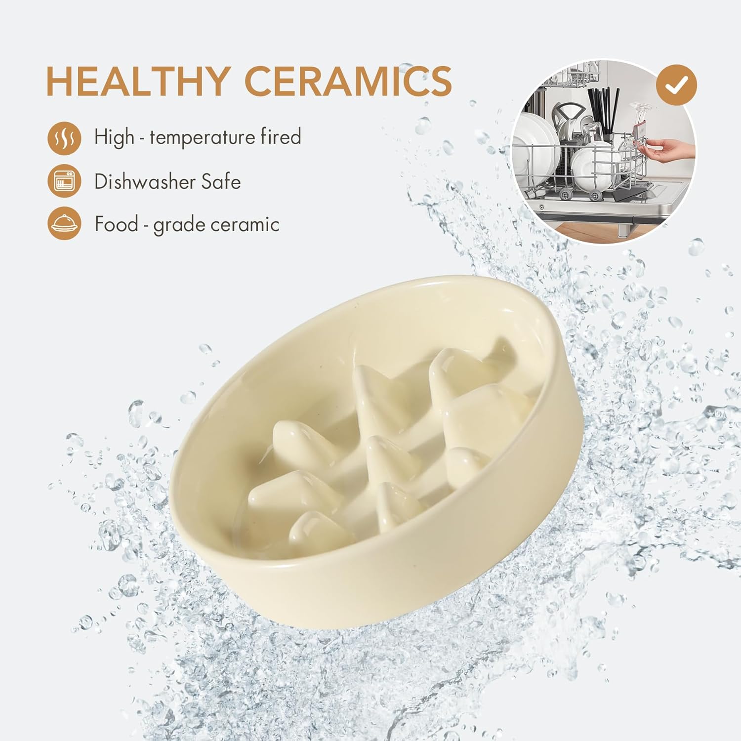 - Stable and Anti-Slip: Ceramic bowl is heavy and stable, and the anti-slip strip at the bowl's bottom can prevent bowl from sliding while your pet eating.