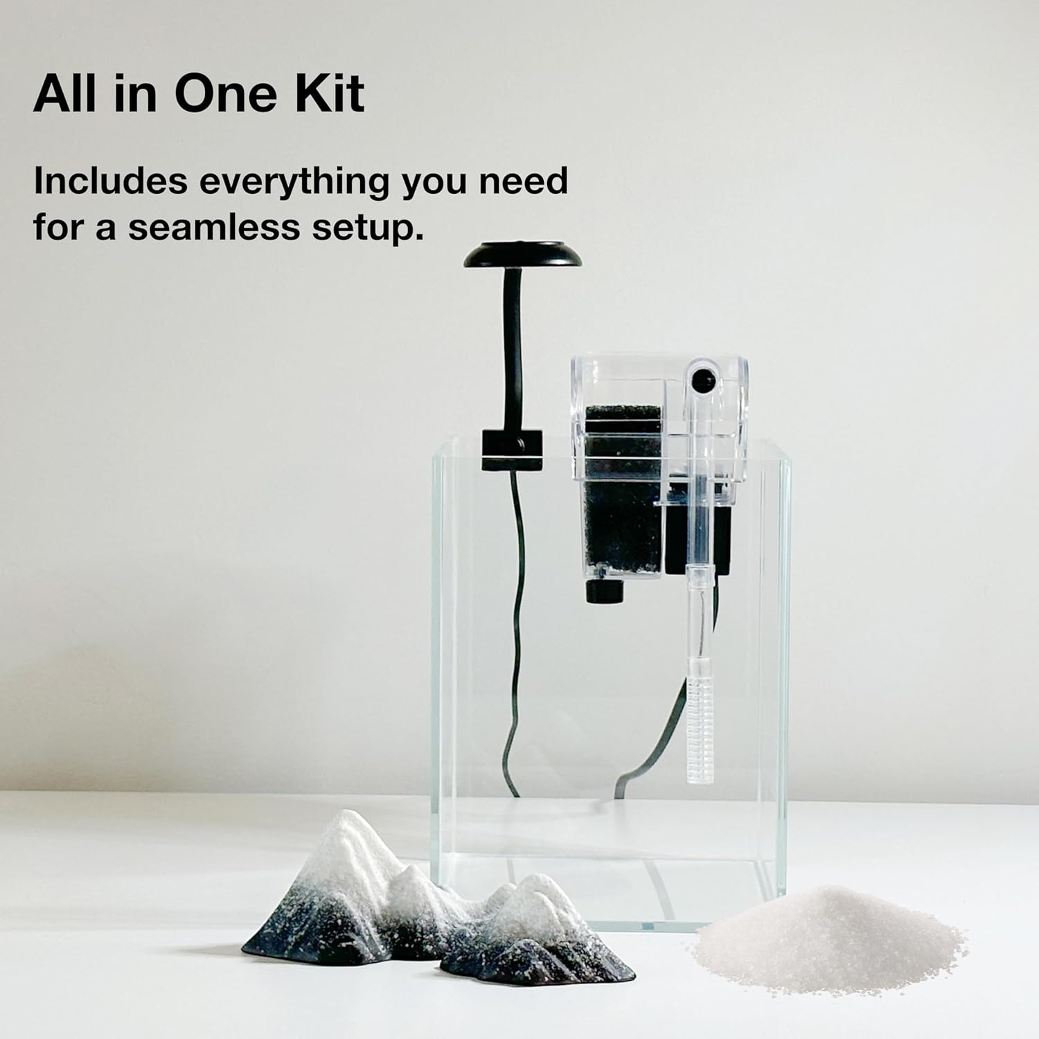 Nano Aquarium Kit,1.5 Gallon Rimless Small Glass Tank with Filter, Aquarium Light, and Aquascaping Decorations, for Home and Office (Transparent Tank - Mountain, Small)