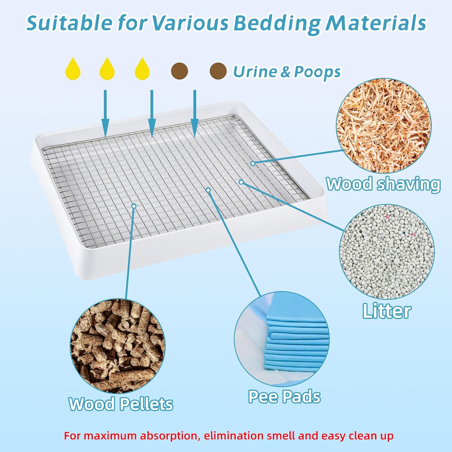- Low Entrance Design: Small animals's legs and feet are short, this low edge guinea pig litter box with metal grid let's them get up and down so much easier; Wonderful low entry (on all sides) perfect for arthritics rabbit and senior small animals that they doesn't have to launch himself to get over the sides, since they're not very deep!!!!