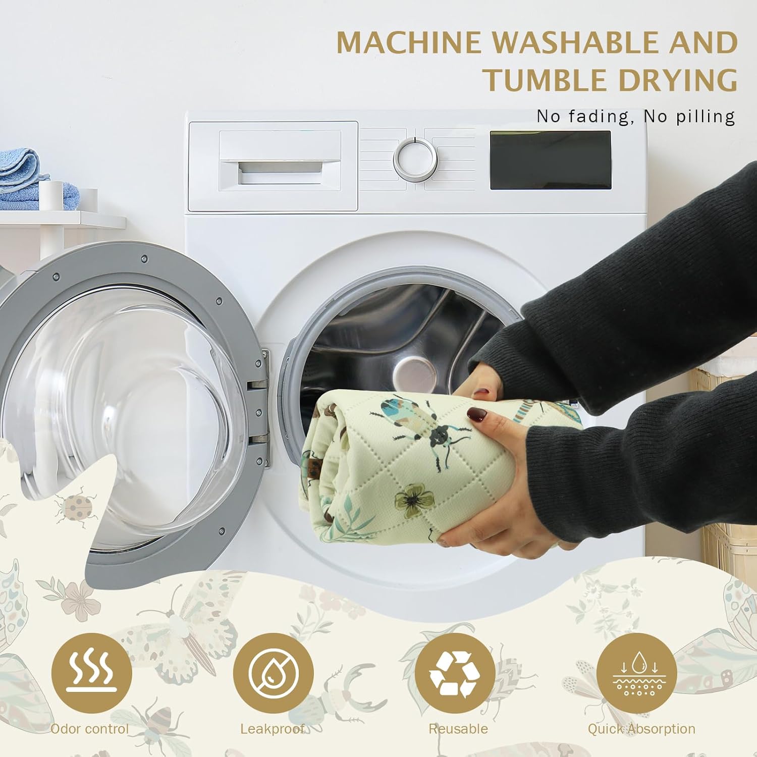 IEUUMLER Washable Pee Pads for Dogs, 2 Pack Insect Pattern Reusable Waterproof Puppy Potty Pads, Non-Slip Absorbent Pet Training Pads for Playpen Crate Bed EU014
