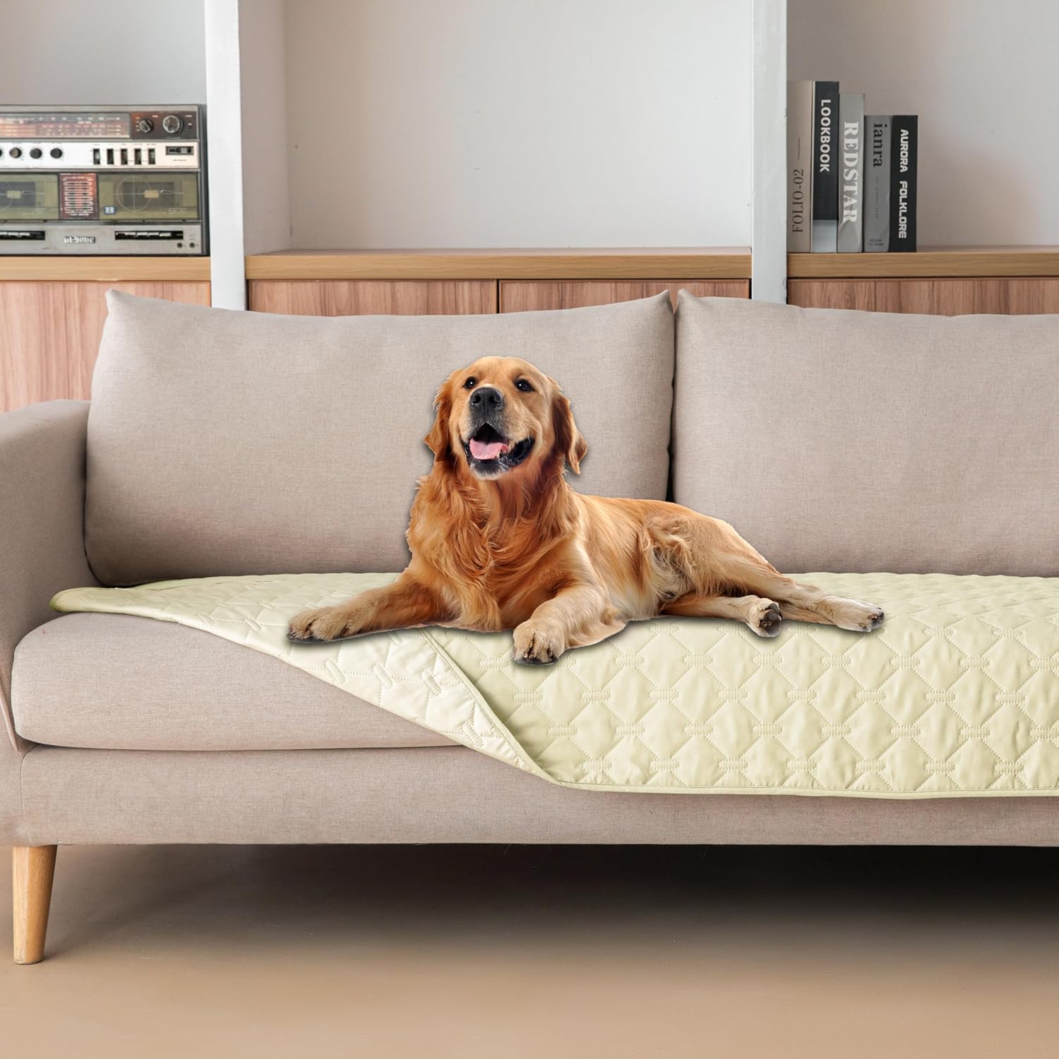 gogobunny 100% Double-Sided Waterproof Dog Bed Cover Pet Blanket Sofa Couch Furniture Protector for Puppy Large Dog Cat, Reversible (30x80 Inch (Pack of 1), Dark Cream/Light Cream)