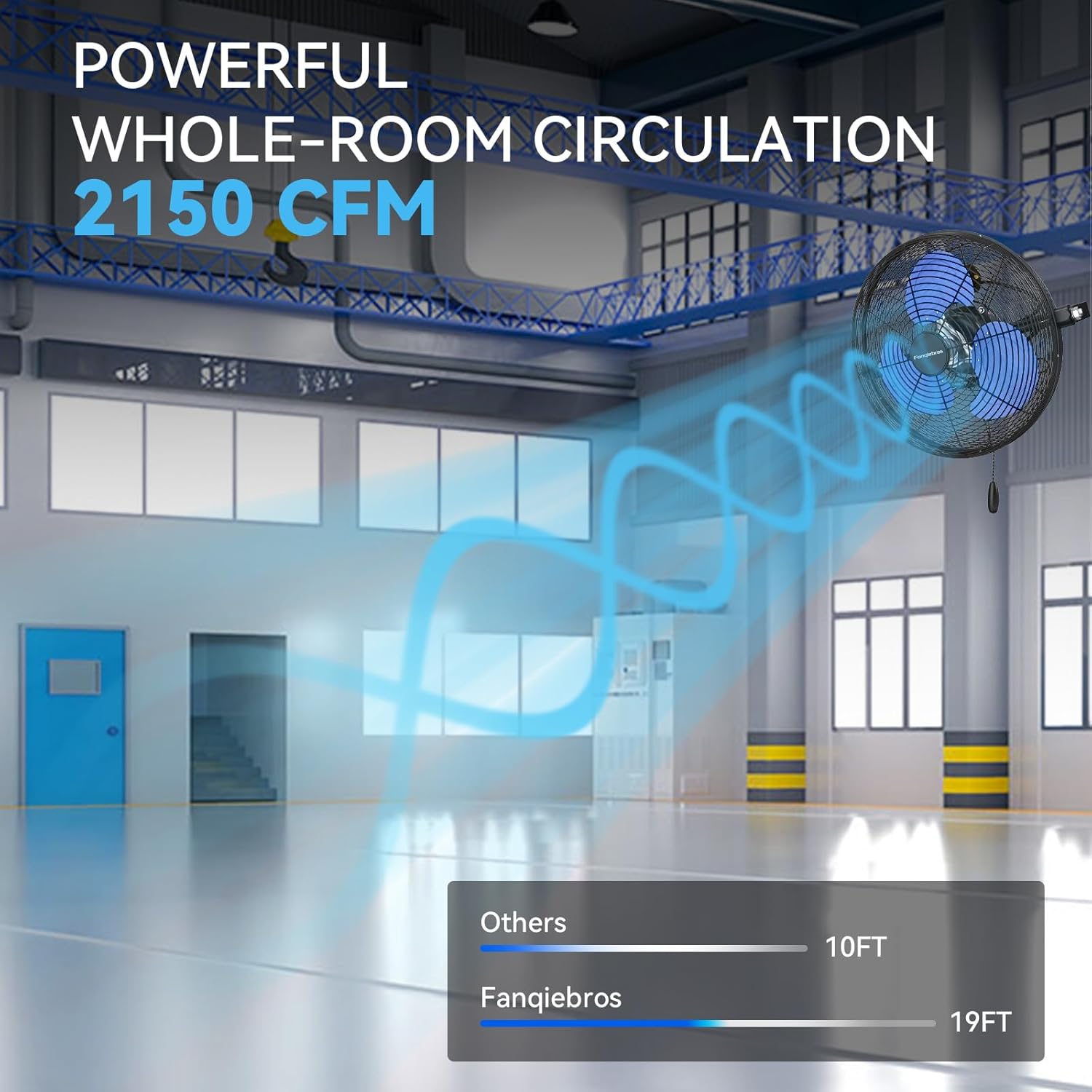 - šš¢š š” ššš„šØšš¢šš² šš¢š« š š„šØš° - Equipped with 3 adjustable wind speeds, low (1700CFM), medium (2100CFM) and high (2500 CFM), this wall fan utilizes the raw power of the pure copper motor to provide hurricane-like airflow to meet your garages, shops, covered patios, or anywhere else you need